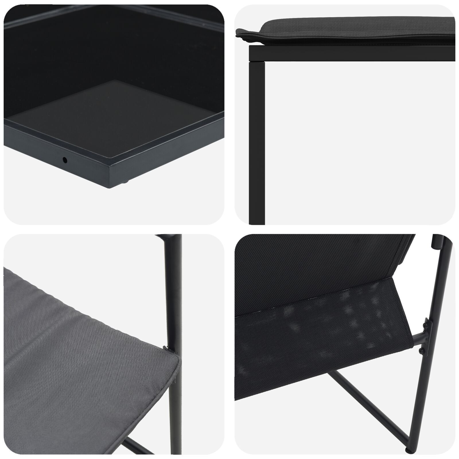 Ideal for patios, balconies or gardens, the modern design with sturdy black powder-coated steel frame and dark grey cushions make any area a welcoming place to relax or entertain.