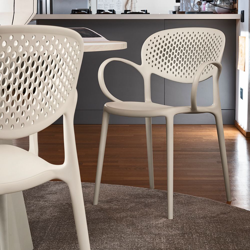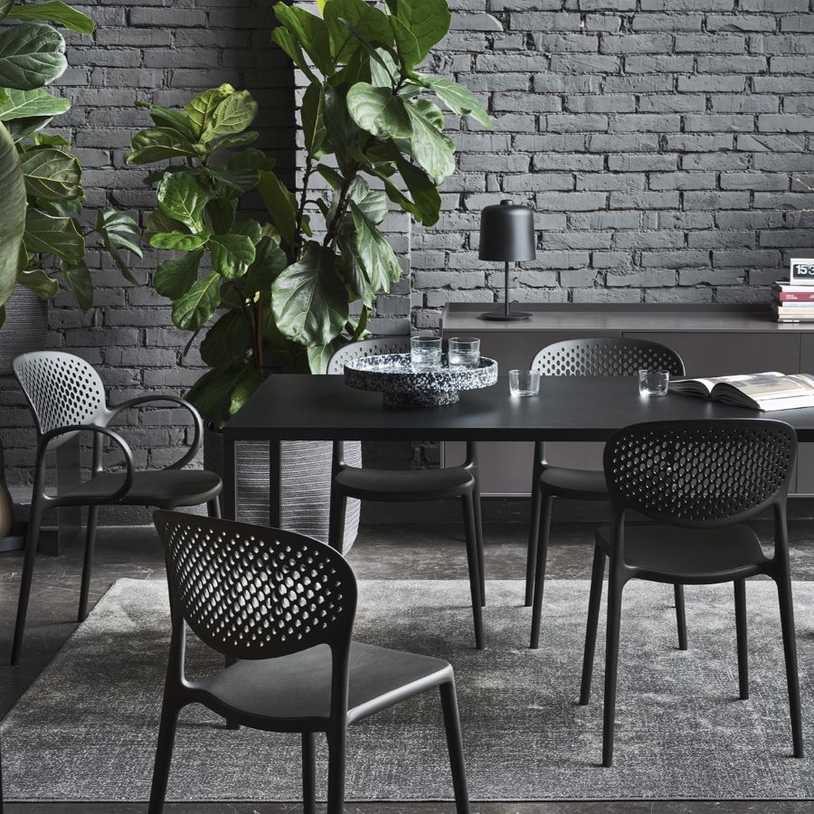 The Abby chair is enriched with a new version equipped with a perforated backrest.