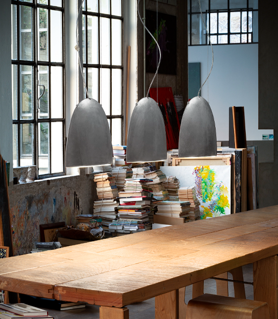 The light is concentrated downwards, ideal for illuminating tables or environments that require a targeted beam of light.