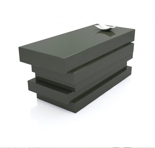 Glossy lacquered finish available in colors: blue, gray and green