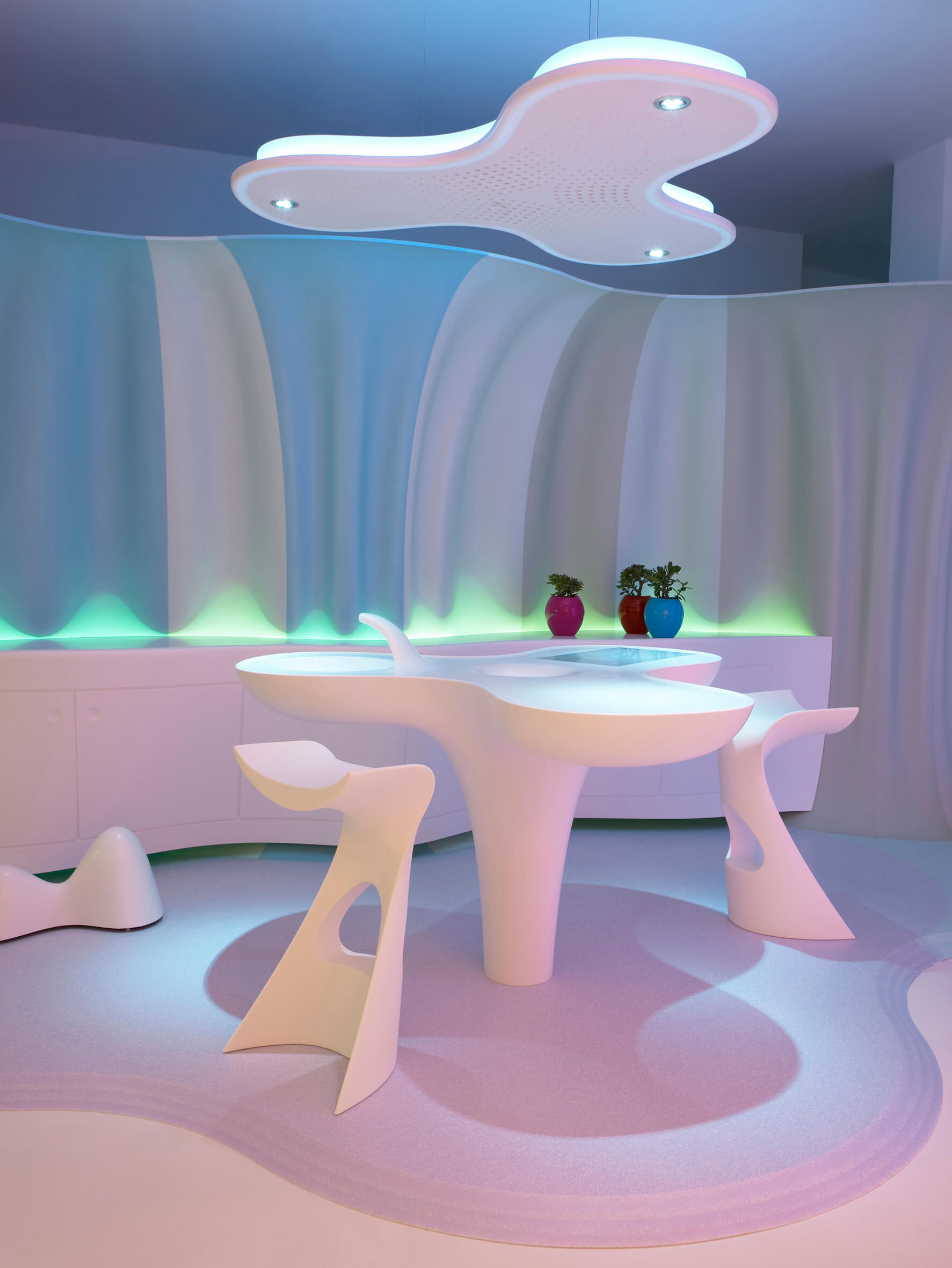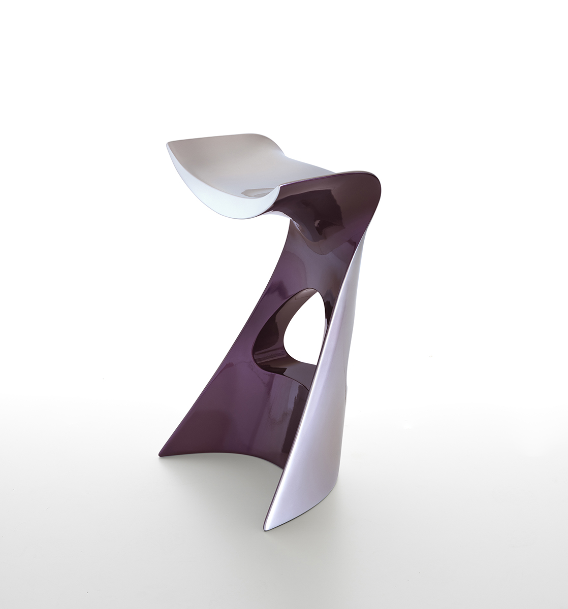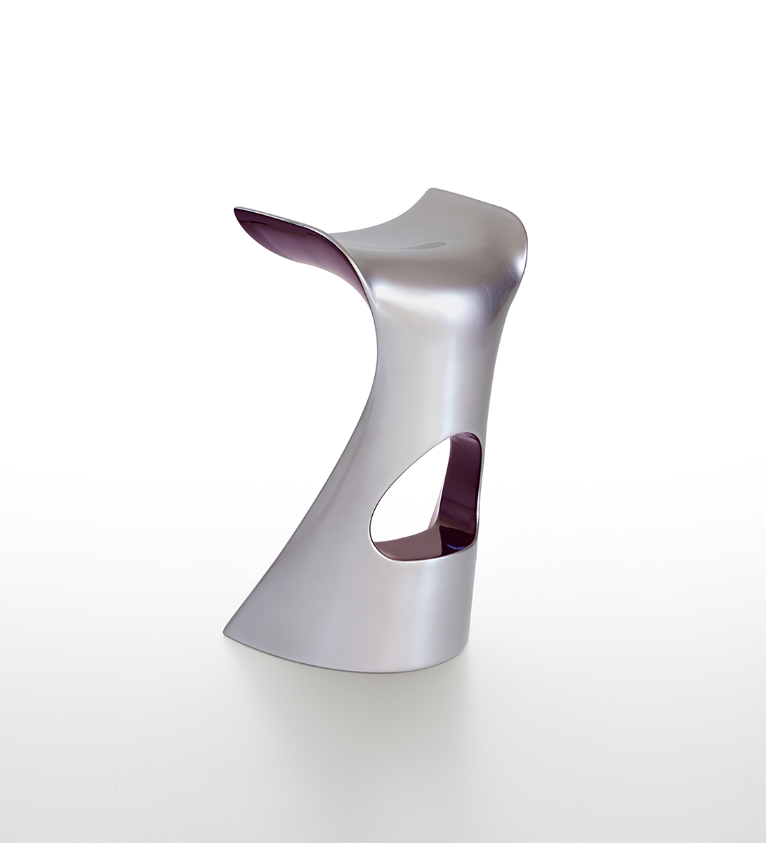 Koncord is a high stool characterized by organic and dynamic lines, ideal for furnishing bars, terraces, gardens and even living rooms or kitchens in a scenographic and original way. Winner of the 2009 GOOD DESIGN AWARD, with a slim design, Koncord is slender in shape and agile in movement. Its functionality, the comfort of the seat improved by the footrest hole at the base and the avant-garde design typical of the volcanic designer Karim Rashid have made Koncord one of the workhorses of the entire Slide collection. Available in the entire collection of standard colors and in a lacquered version.