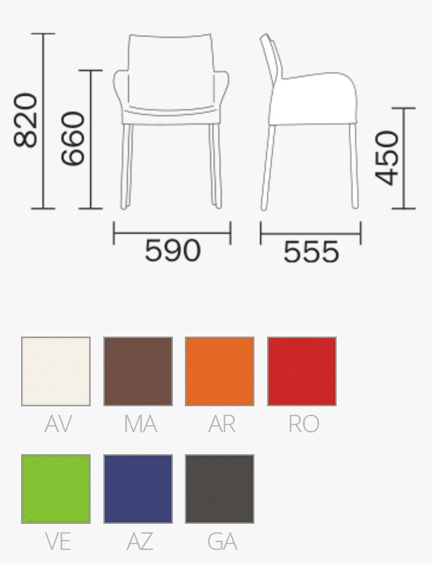 Stackable armchair with polypropylene shell and legs in anodized aluminum tube with a diameter of 28 mm. Comfortable, enveloping and with a sober design it is available in different colors. It can be used both indoors and outdoors.