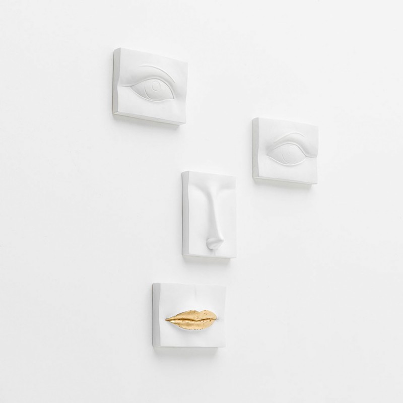 Ceramic wall panel in White colour, Mouth in Red, Gold and Silver.