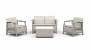 SCANDI LINEA LOUNGE SET with cushions - Armchairs with open armrests 73x70.9x77.5h Sofa 73x126x77.5h Storage table 75x52x40h - Jute effect