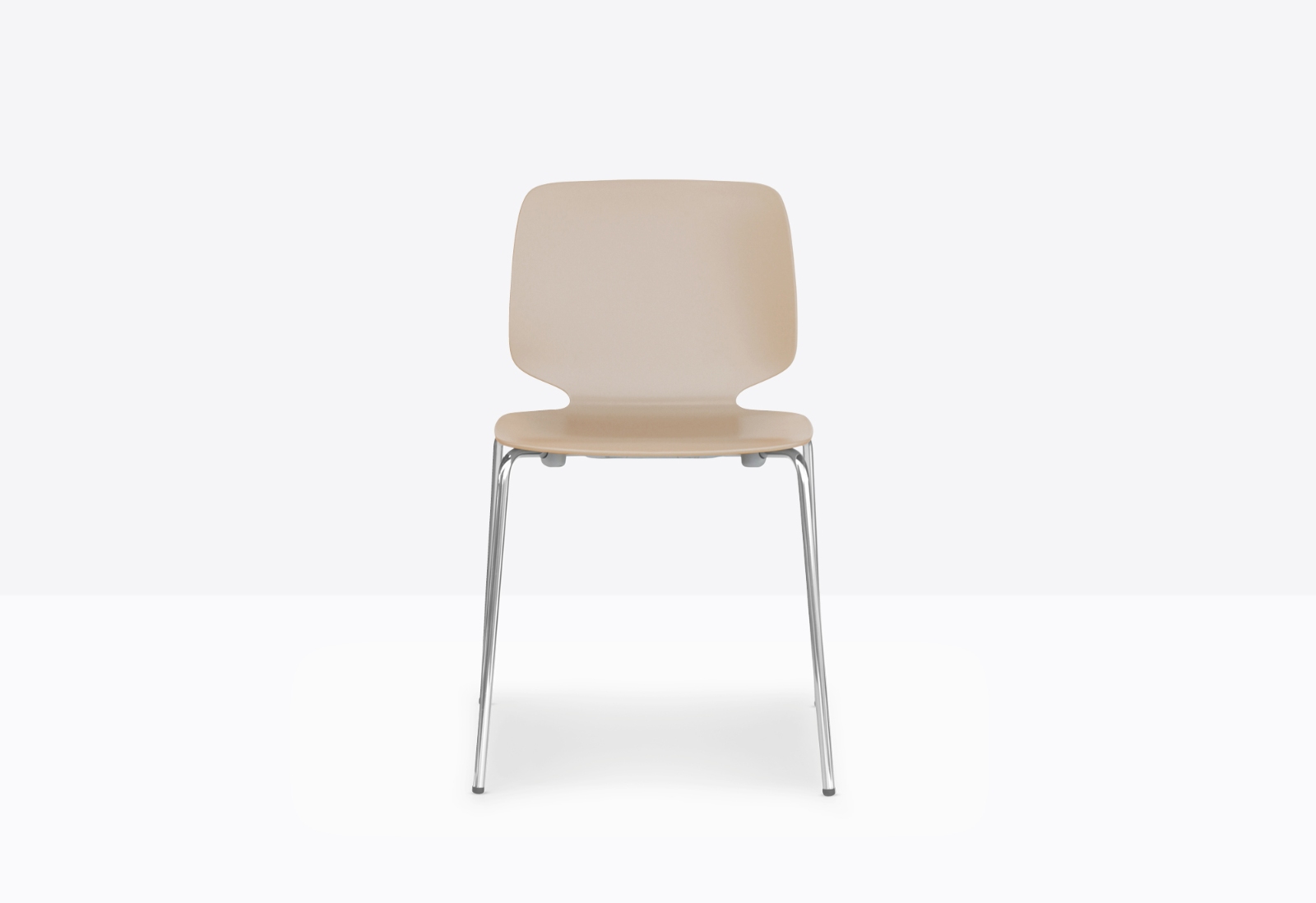 The chair features a technopolymer shell and a Ø16mm steel tube structure, offering an essential and refined design.
