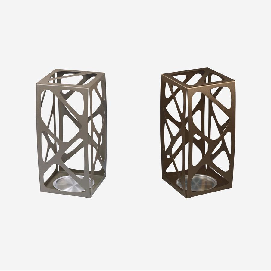 The Basket umbrella stand in painted steel with stainless steel drip tray.