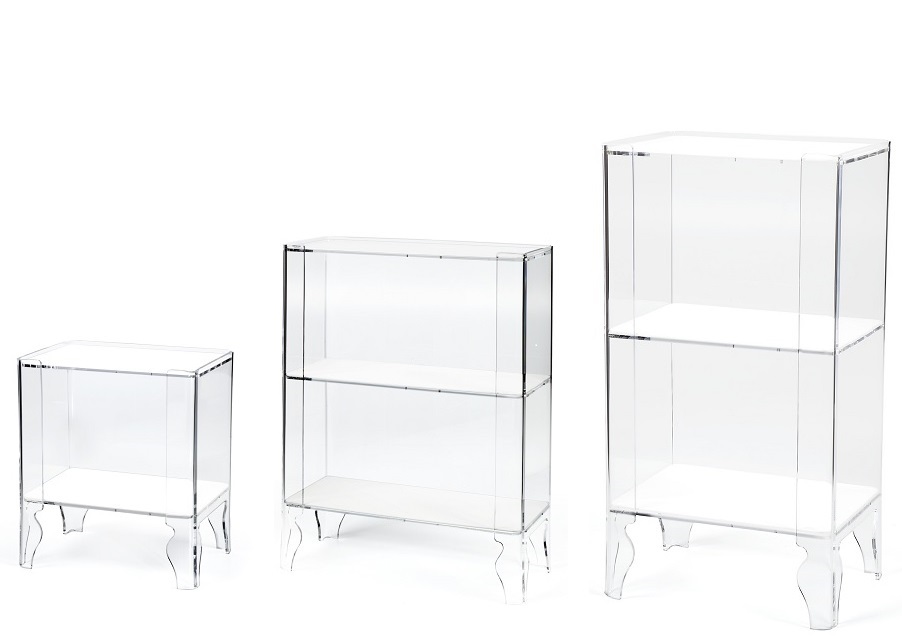 Tall cabinet in transparent methacrylate (8mm thickness) W 49.5cm D 36cm H 90cm