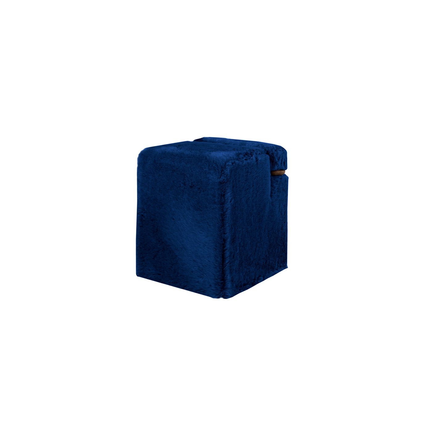 Contemporary pouf by Nanda Vigo, with a wooden frame and variable-density polyurethane foam padding for optimal comfort. Upholstered in blue faux fur, it's ideal for adding style and originality to living rooms, bedrooms, or studies. For indoor use only. Dimensions: H 58 x W 44 x D 49 cm, seat height 36 cm.