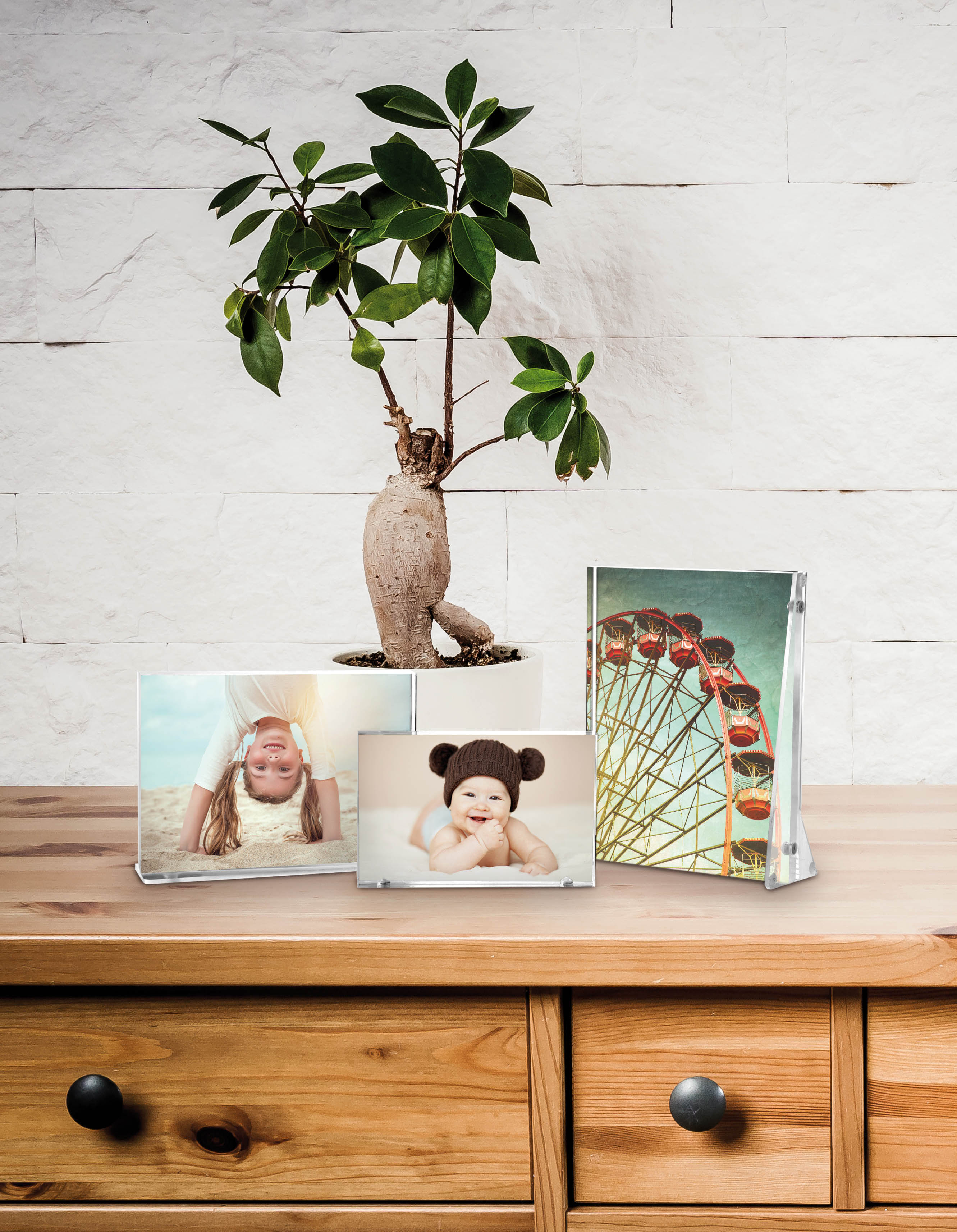 Photo frame in transparent acrylic crystal, horizontal or vertical support.
