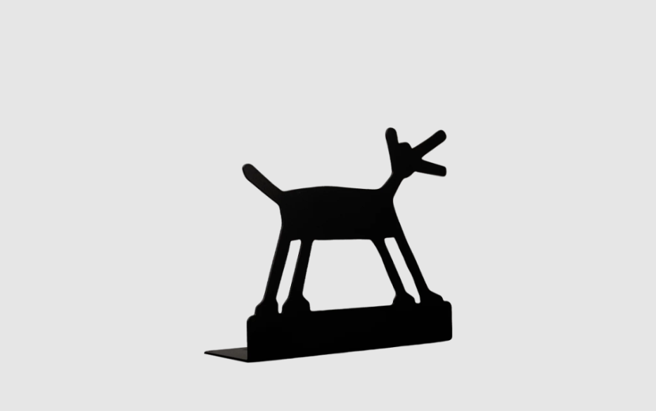 Bobby is the bookend that takes the shape of a curious and lively dog.