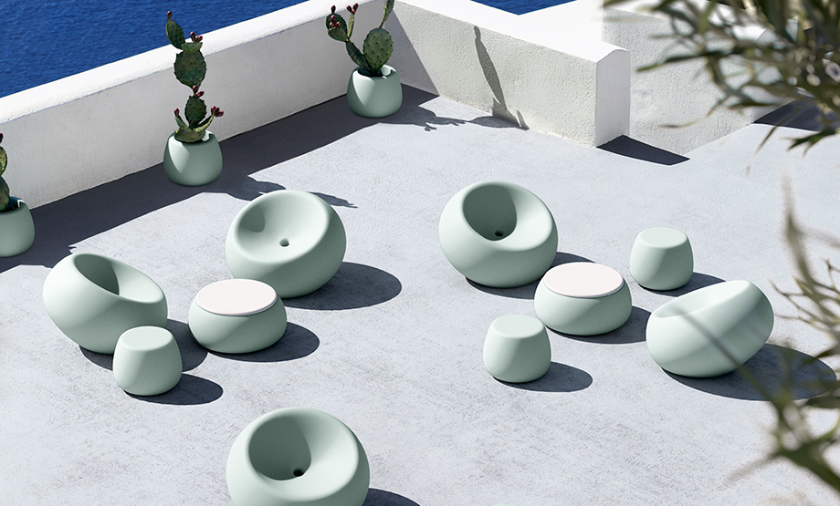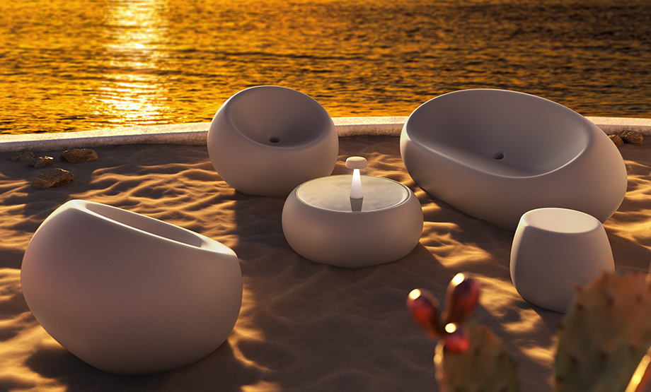 The Boom armchair is the new icon of Plust, which combines the geometric perfection of the circle with high seating comfort.