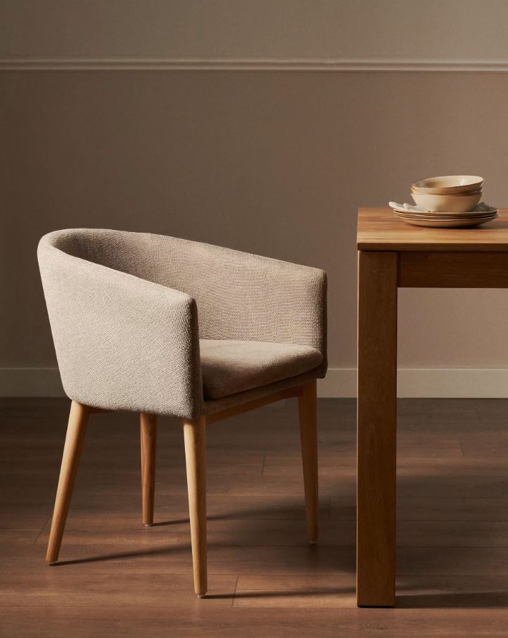 The Harlan chair, with armrests, a padded seat, and an arched backrest, envelops you in maximum comfort. Ideal for extendable tabletops.