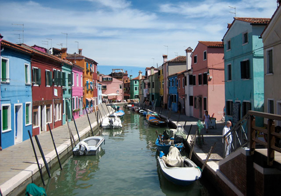 Cuckoo clock made in wood. The design and colors are reminiscent of the houses of Burano, the famous island of the Venetian Lagoon. Battery quartz movement. A light sensitive sensor automatically stops the ringer in the absence of light.