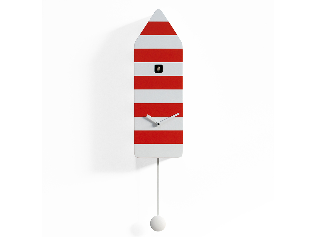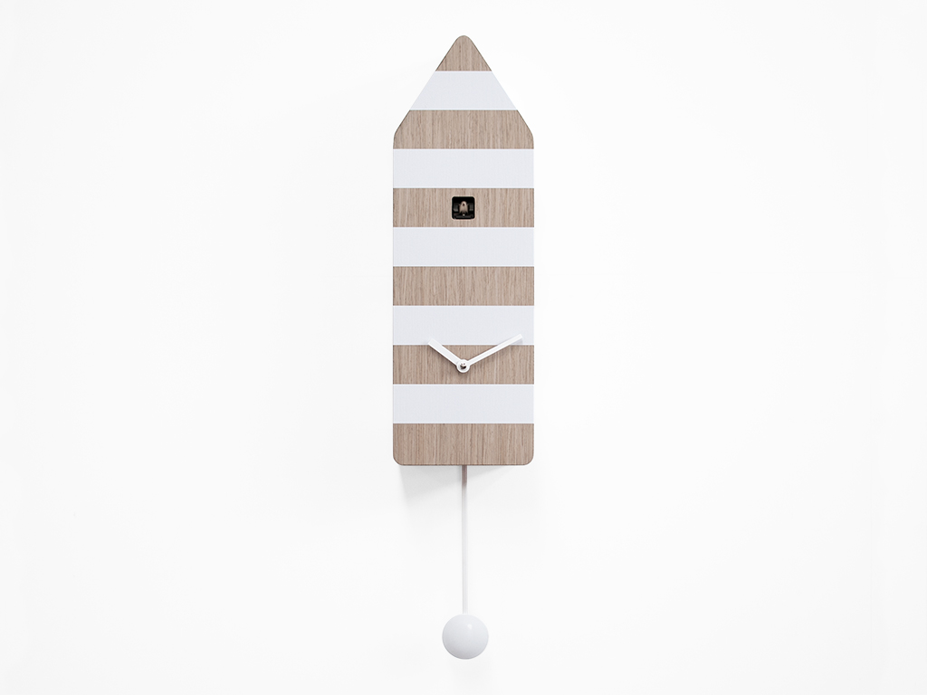 Capri is the cuckoo inspired by one of the most sought after tourist destinations in Italy, the island of the Gulf of Naples, a place of vacation and relaxation. The cuckoo with bright tones and clean lines recalls the cabins of the bathing facilities but with the typical colors of the signal lights of the islands. A simple object that holds many emotions and memories. Capri is included in the permanent exhibition of the Deutsches Uhrenmuseum, the historic German Clock Museum, important for the vast collection of watches and cuckoos from all over the world. Capri is made of wood, equipped with a battery-operated quartz movement with a sensor that automatically excludes the ringer in the absence of light.