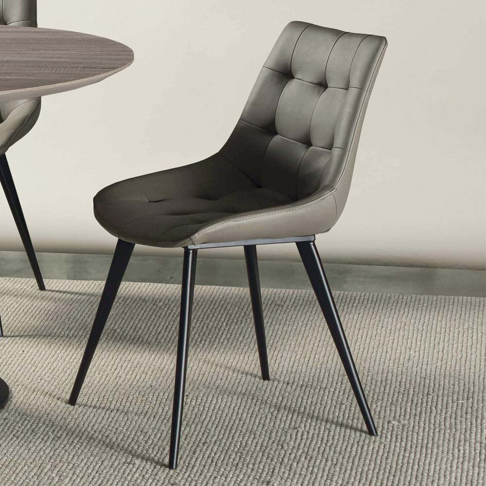 Characterized by black painted metal legs and a seat covered in eco-leather in mud dove gray or titanium grey, this chair is embellished with fine capitonnè workmanship which adds a touch of refinement and style.