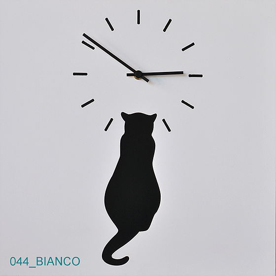 Wall clock Lacquered MDF Colors: Black with white cat - White with black cat Dimensions: L 38.5 x H 38.5 cm des. Gianluca Minchillo