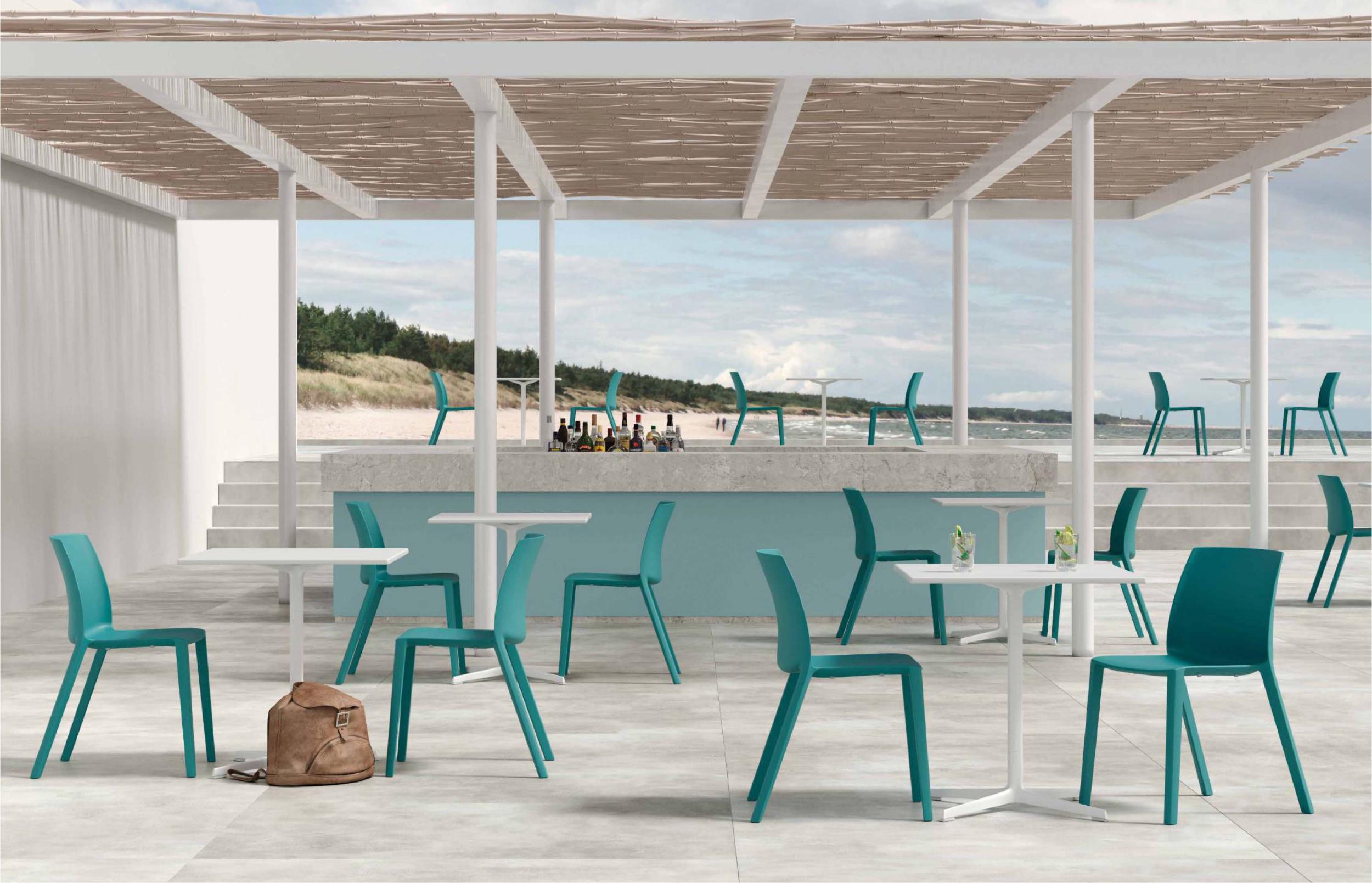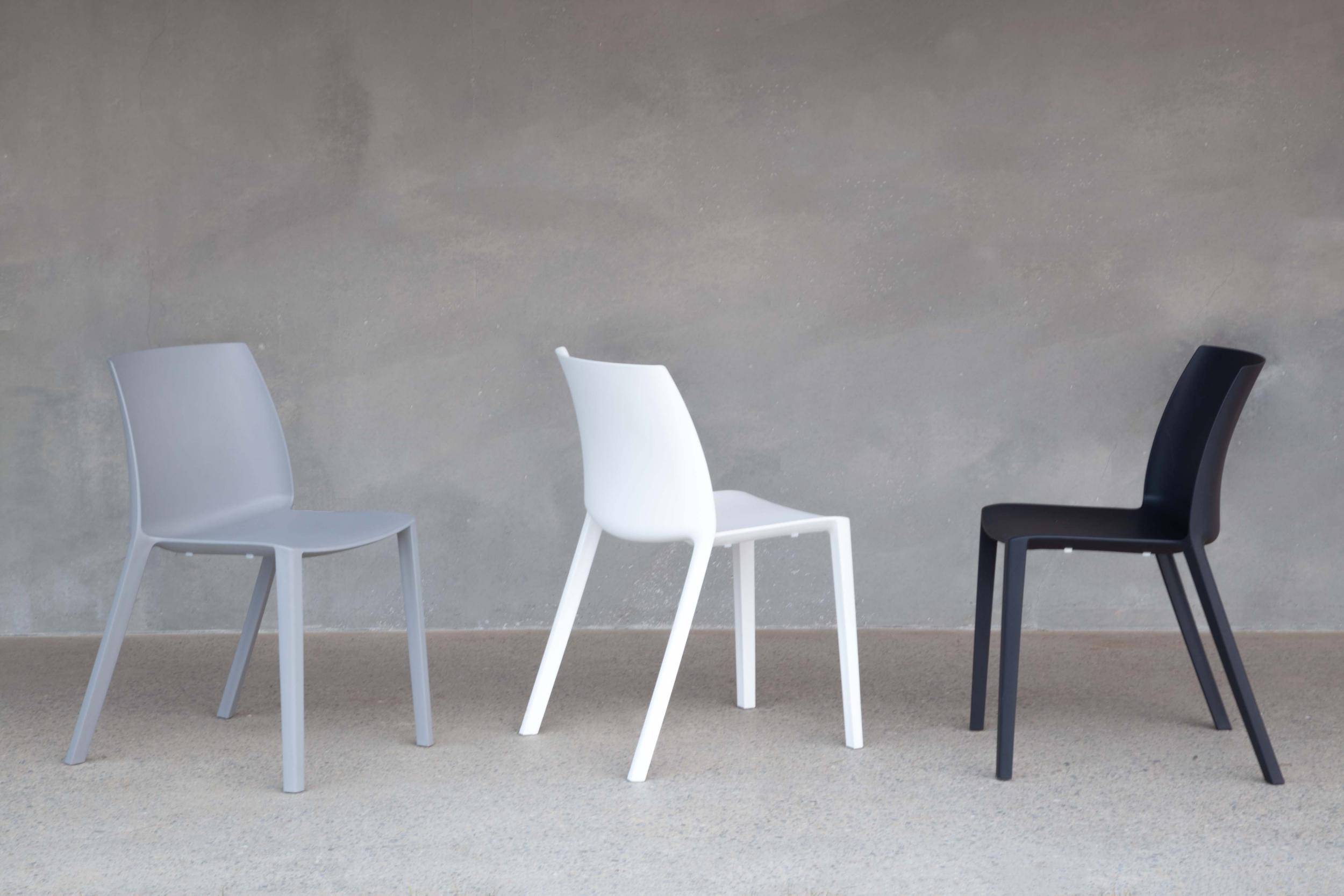 This chair, made of high quality polypropylene, is available in three refined colours: White, Neto and Ottanio.