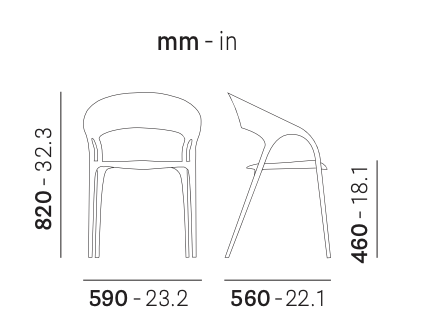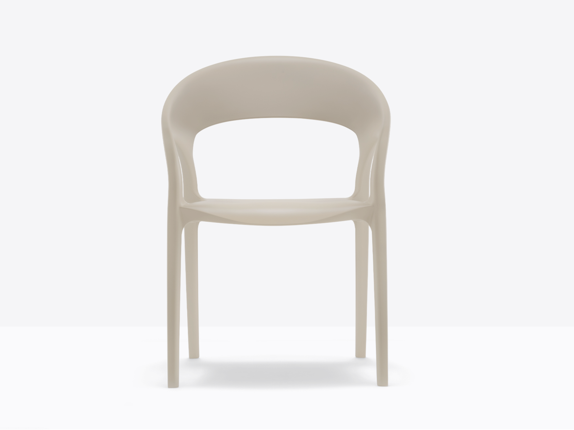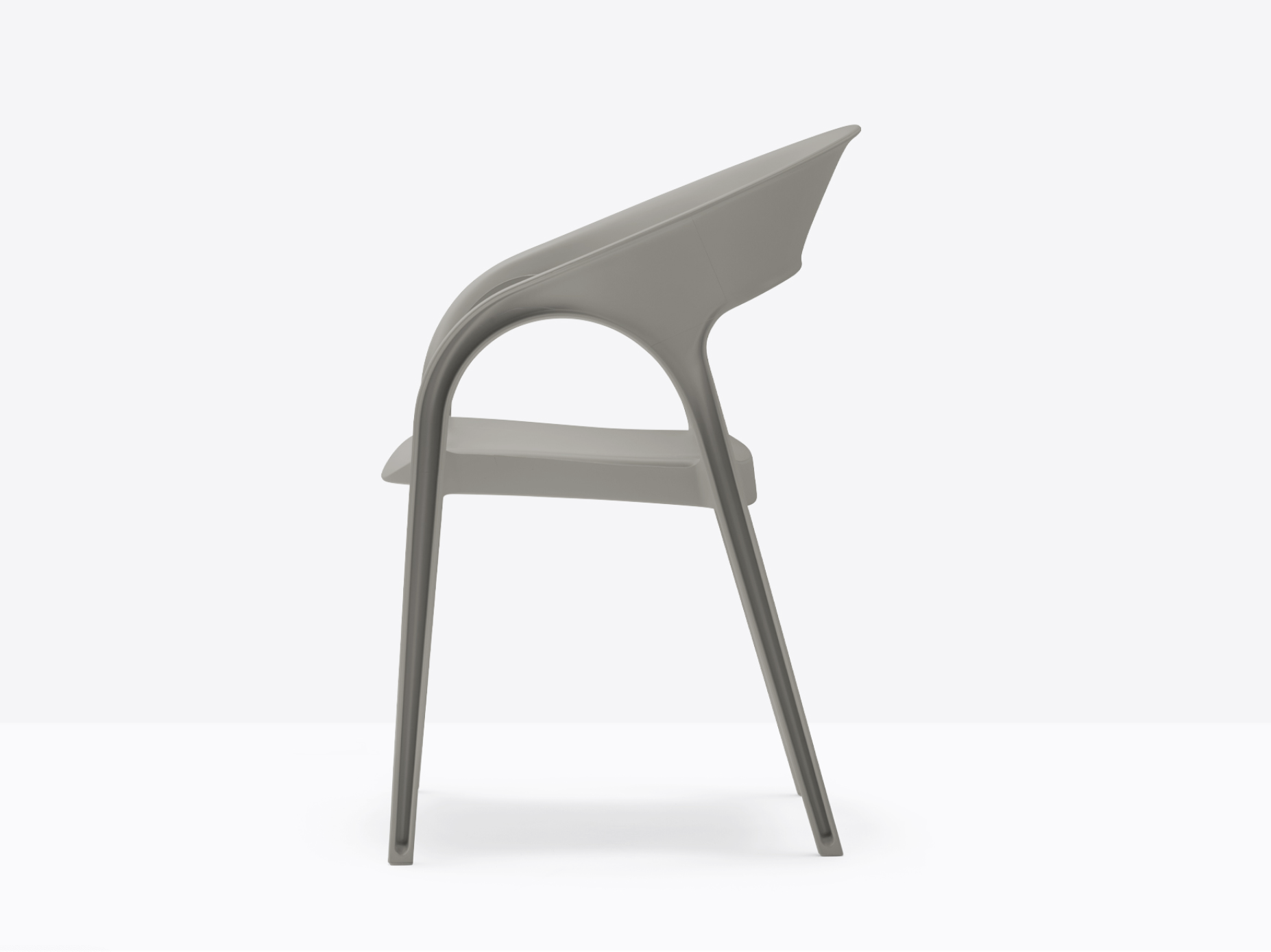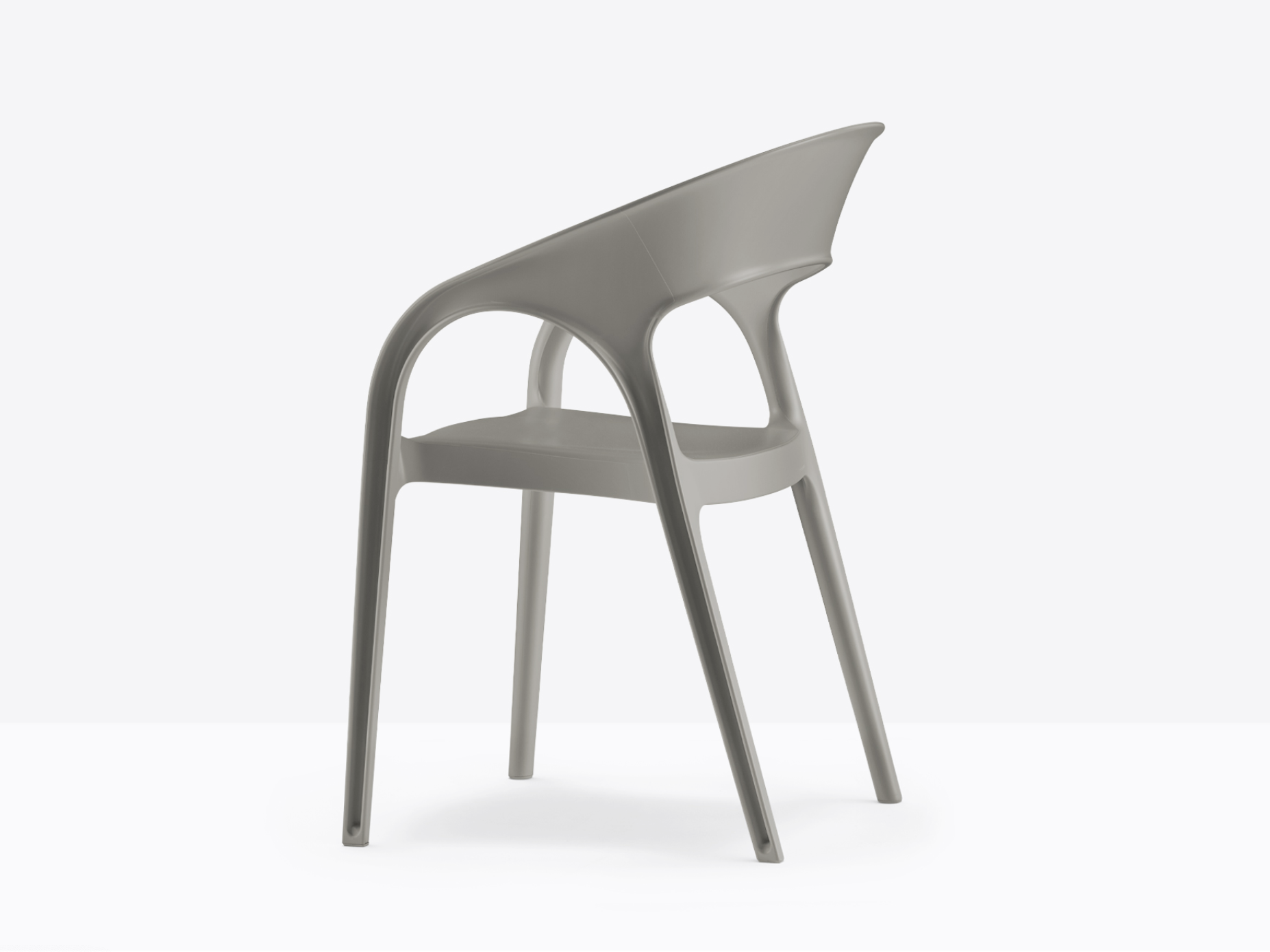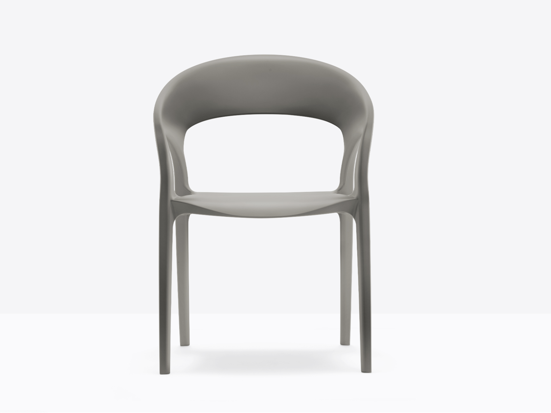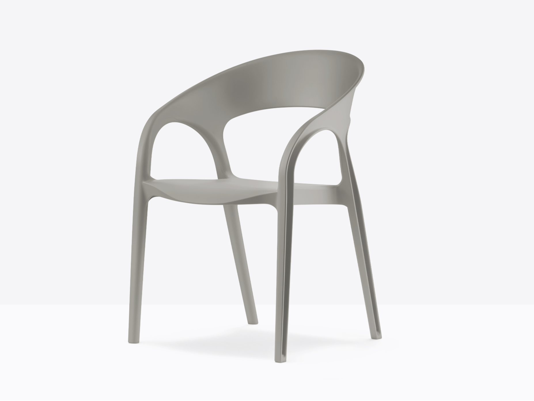 Gossip is a polypropylene armchair with soft and enveloping shapes, light and stackable. In order to continue the company path in support of environmental sustainability, Gossip is also offered in "recycled gray", completely made of recycled material: 50% from post-consumer plastic waste and 50% from industrial plastic waste.