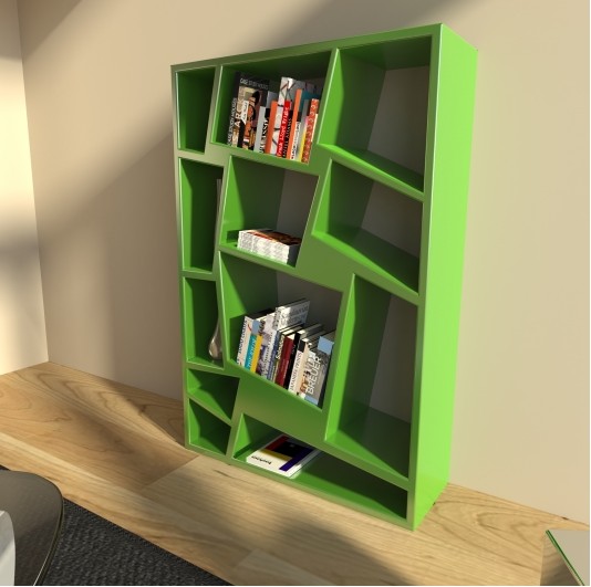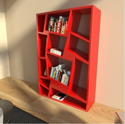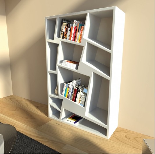 The crossed shelves that allow the support of books as well as other objects are very particular and very practical, making this bookcase truly one of a kind and in its forms.