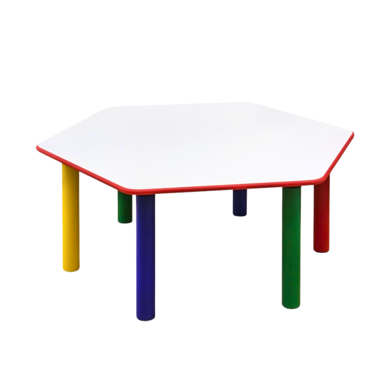 Hexagonal table for children is designed with a particular structure that combines sturdiness, safety and attractive design, perfect for school, recreational and home environments.