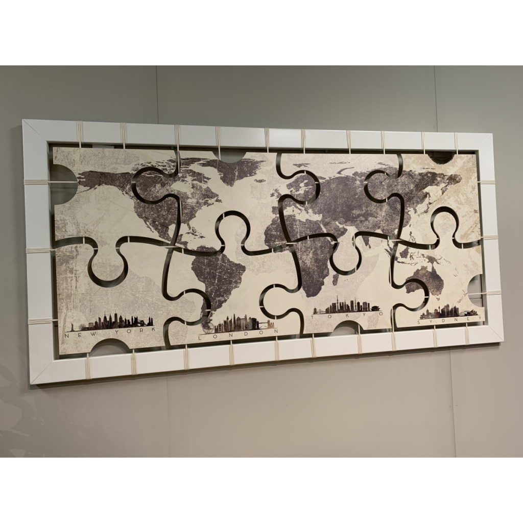 Ivory lacquered wooden frame with eight panels suspended on ropes.