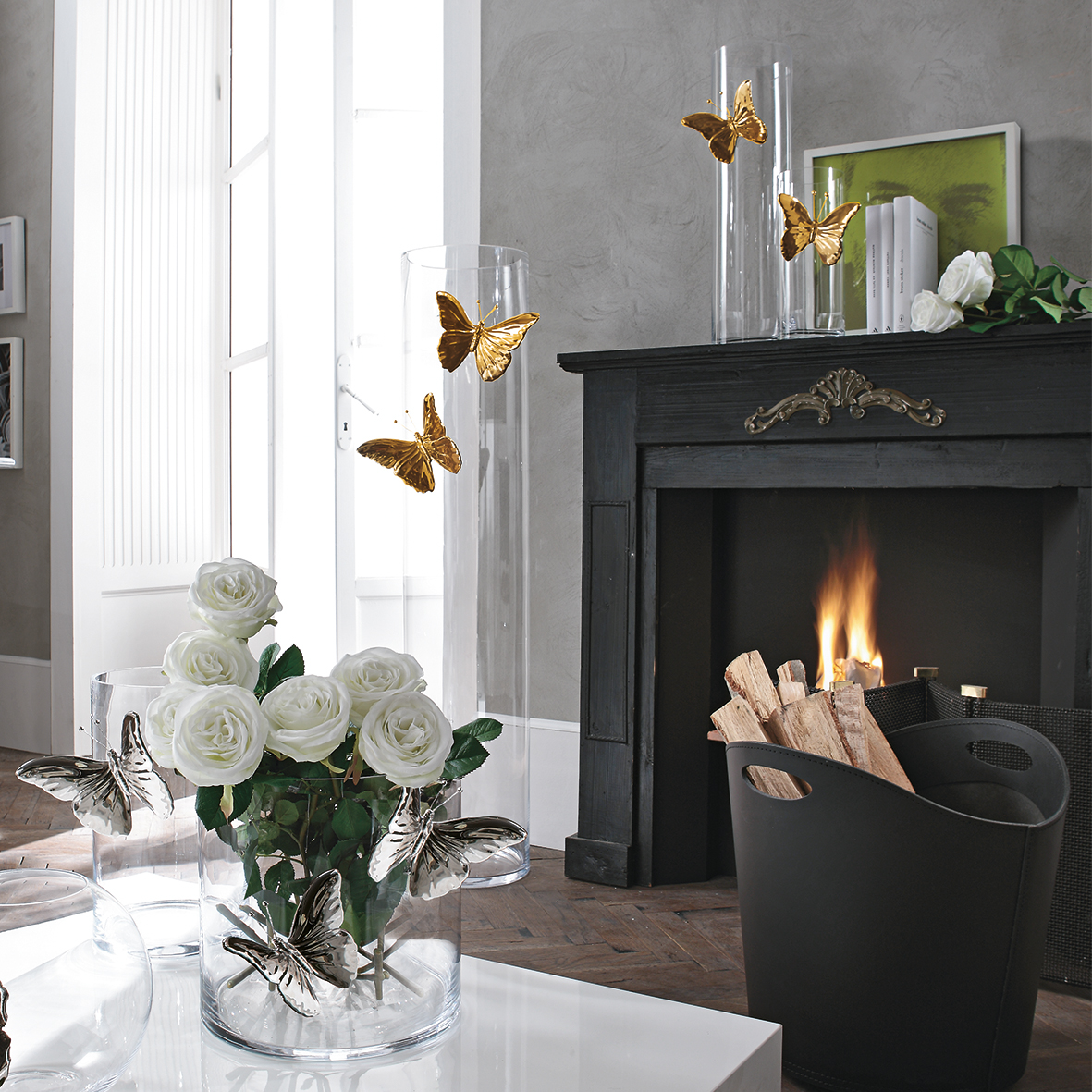 Clear Glass Vase Ceramic Butterfly