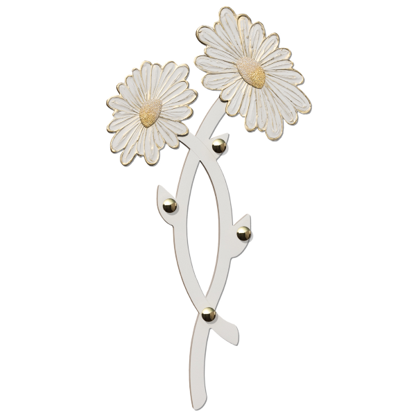 Shaped ivory lacquered hanger with two hand-painted elements on relief material, four chromed knobs.