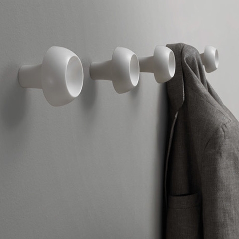 Wall clothes hanger made of white technopolymer with 1 hole in the central part to allow fixing to the wall.