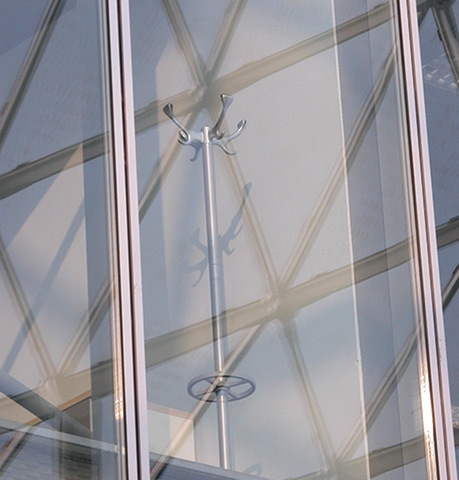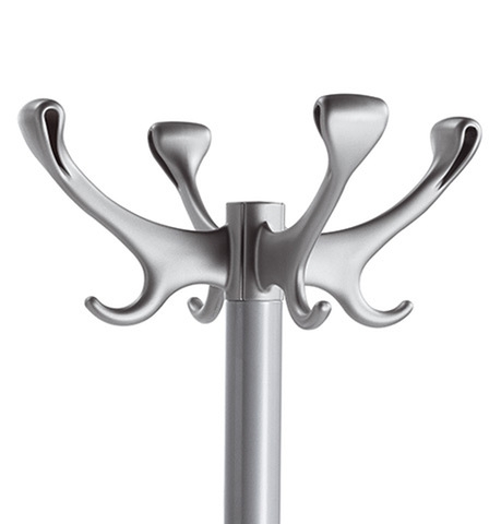 Coat stand made of a deep-drawn steel base with rounded edges to prevent damage to the floor surface, painted with powders