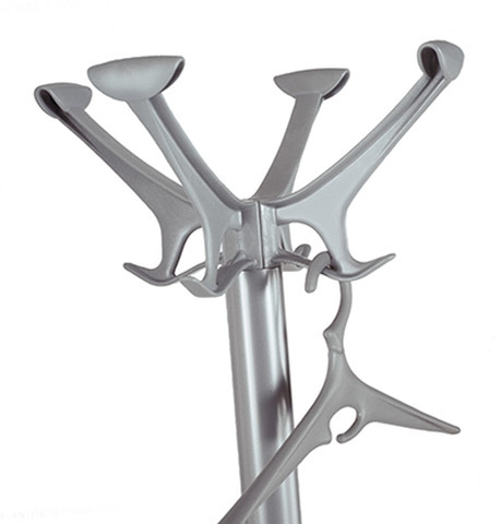 Coat stand made of a deep-drawn steel base with rounded edges to prevent damage to the floor surface, painted with silver gray epoxy powders.