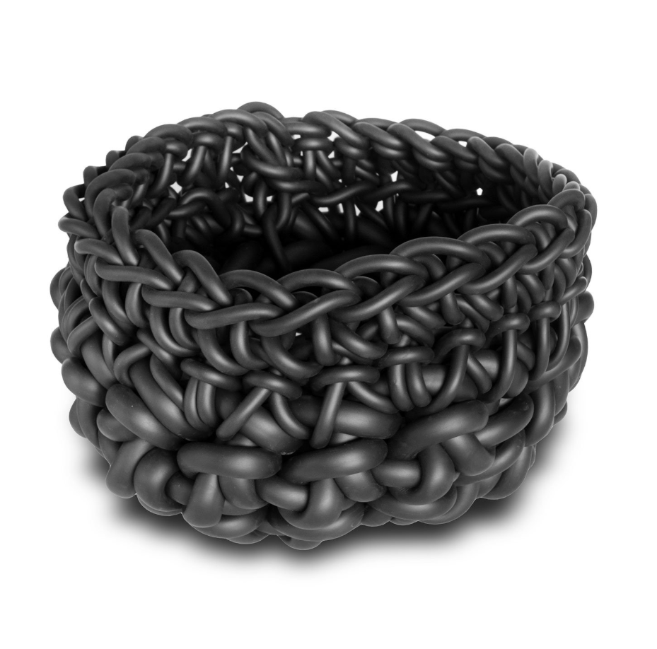 Handcrafted basket in hand-woven neoprene, perfect for a touch of modern and functional design.