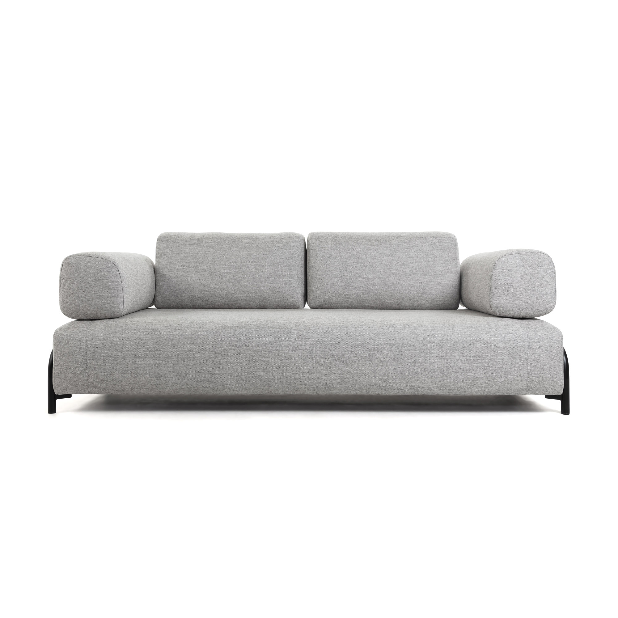 The Compo sofa is designed by Òscar Doll, one of the Kave Home team designers. It is a timeless item, due to its essential and basic shape, with which to enjoy all possible combinations, thanks to its accessories. The pine frame is covered with foam and upholstered in dark gray. A versatile sofa that maintains its prominence in all its many forms. Just relax and enjoy it.