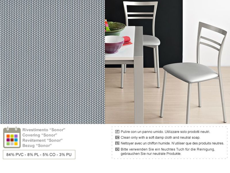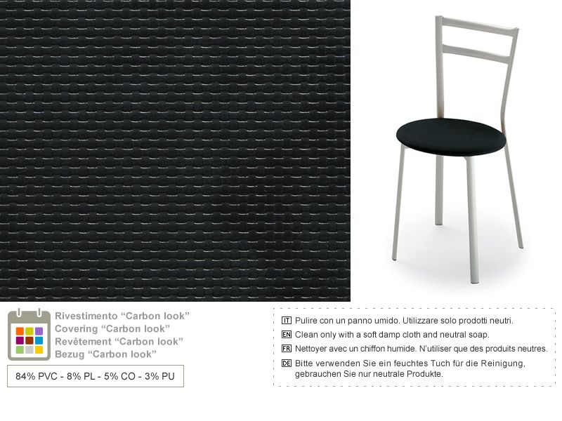 The seat can be padded and covered with gray PVC Carbon Look or Sonor fabric, or with imitation leather, available in white, black, grey, dove gray or noisette.