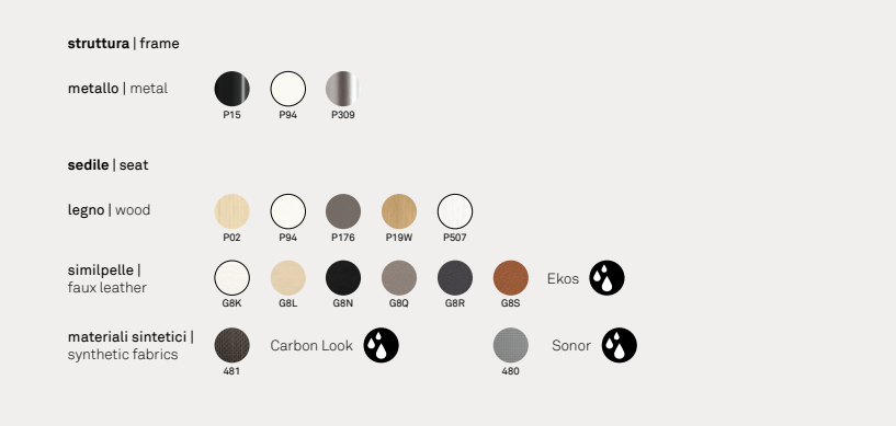 This modern chair is also available with beech plywood seat in the following variants: bleached, wengè, cherry, or matt optical white or matt dove gray lacquered.
