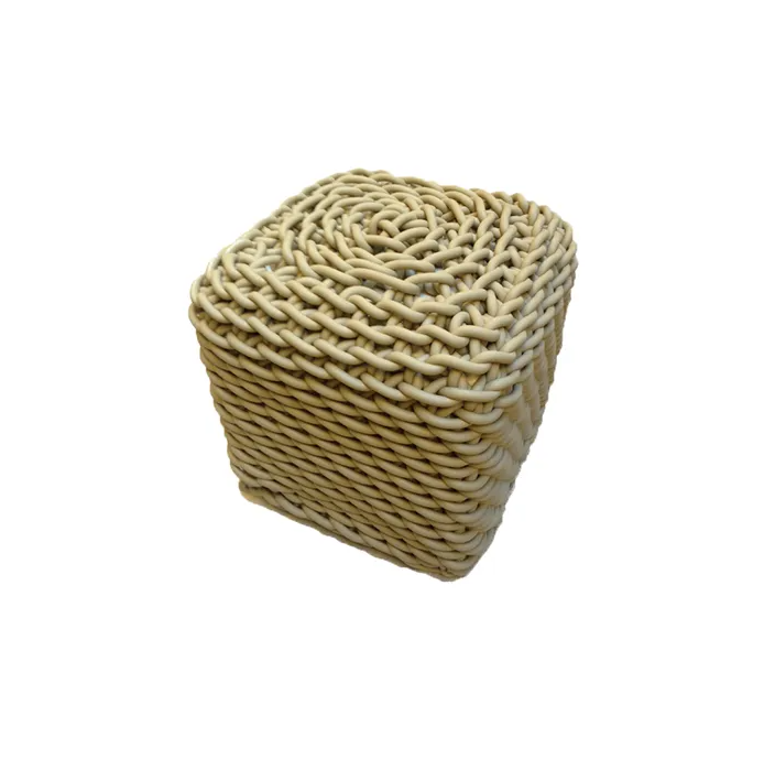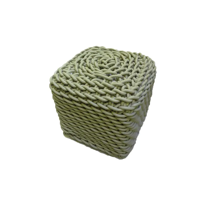 Knitted rubber thread poufs combine refined design, comfort and sustainability in a unique handcrafted product.