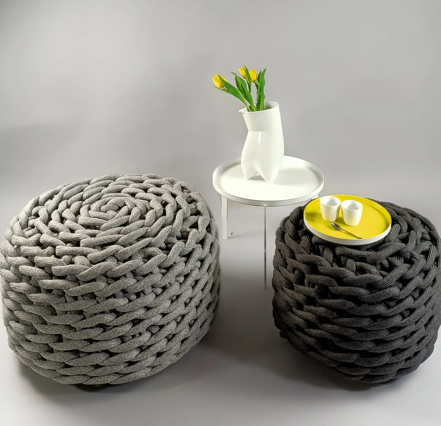 The RC03TR-25 pouf is made of 25 mm polypropylene rope.