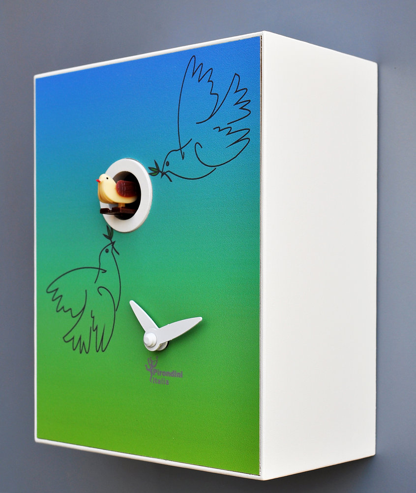 The D'Après Picasso cuckoo clock features an artistic design inspired by the works of Pablo Picasso. Compact and made in Italy, it features a quartz movement and night light function, ideal for decorating your living room, study, or bedroom with a unique and creative style.