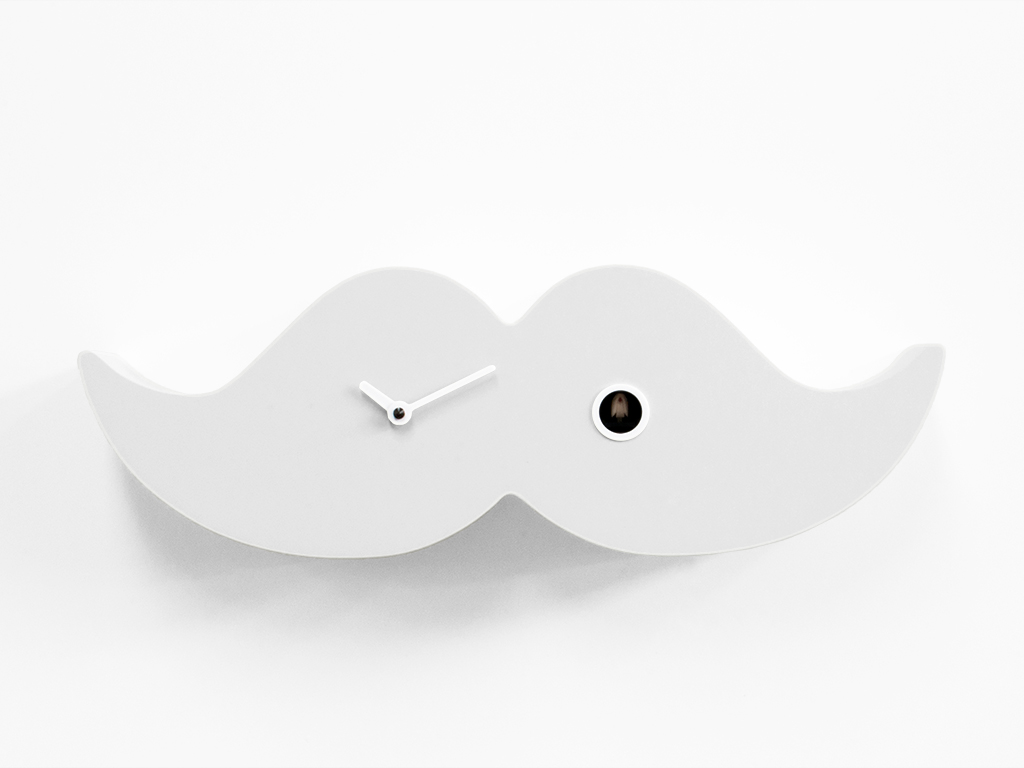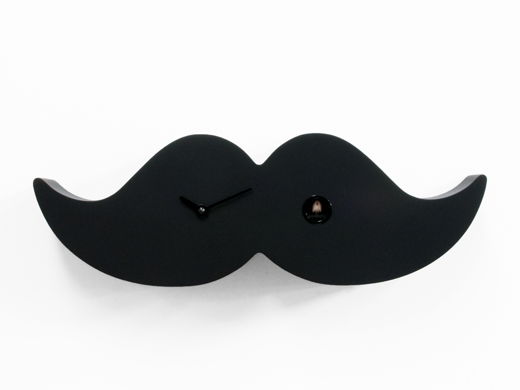 Retro taste, inspiration from other eras; here is a modern and unusual version of the mustache brought to London in the nineteenth century by elegant, distinguished, intellectual men. The handlebar mustache was one of the key symbols of the London dandy and characterized its face and expression. Today the mustaches are a symbol of the modern dandy of the metropolises of the whole world and, thanks to the Cuckoo of Progetti, they can now be hung or placed on the desk or on a shelf giving an elegant touch but, if desired, also ironic to the room. Dandy is made of wood and is available in both the total black and white classic. Battery quartz movement. A light sensitive sensor automatically stops the ringer in the absence of light.