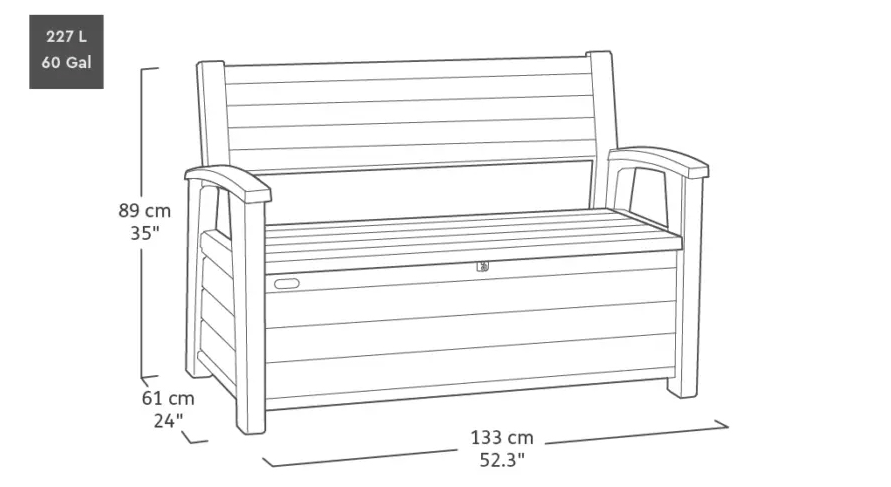 In addition to offering comfortable seating for two people , it integrates a 227-litre storage compartment , perfect for storing cushions, games or garden accessories in an orderly and protected manner.