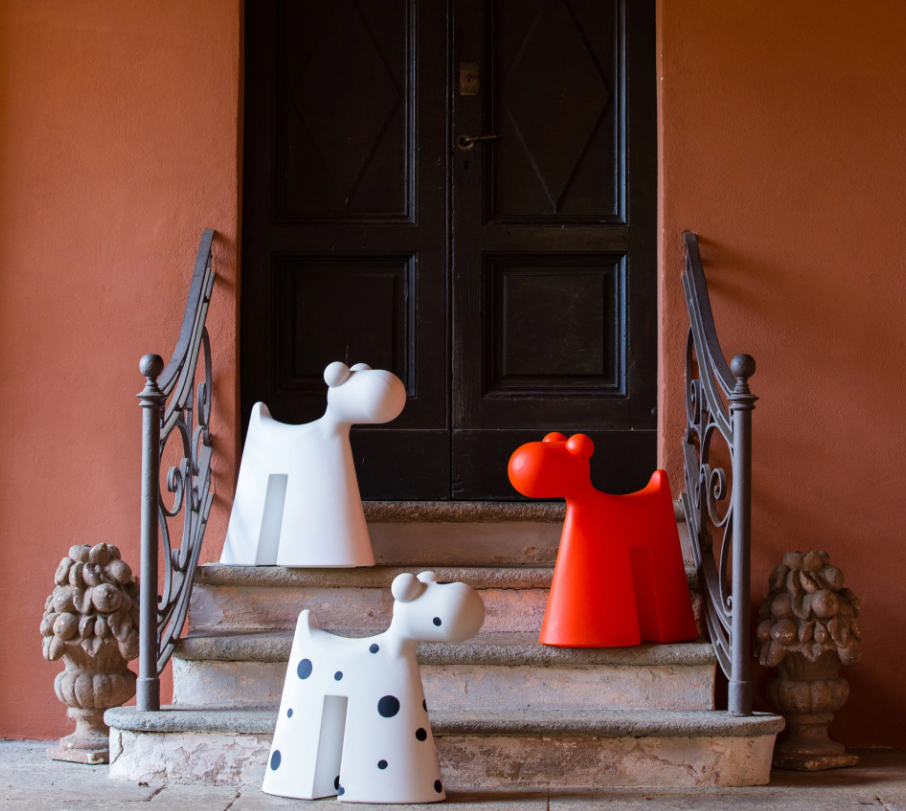 For centuries, dogs have held a place in homes as furry friends or guardians. Doggy also finds space among furnishing accessories: a design object, garden decoration, children's toy or a stool thanks to its solid structure. Located at the entrance, it plays the role of a welcoming guardian, welcoming guests.