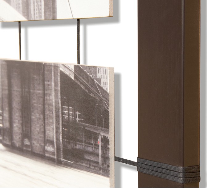 Coffee lacquered wooden frame with ten hand-decorated panels suspended on ropes.
