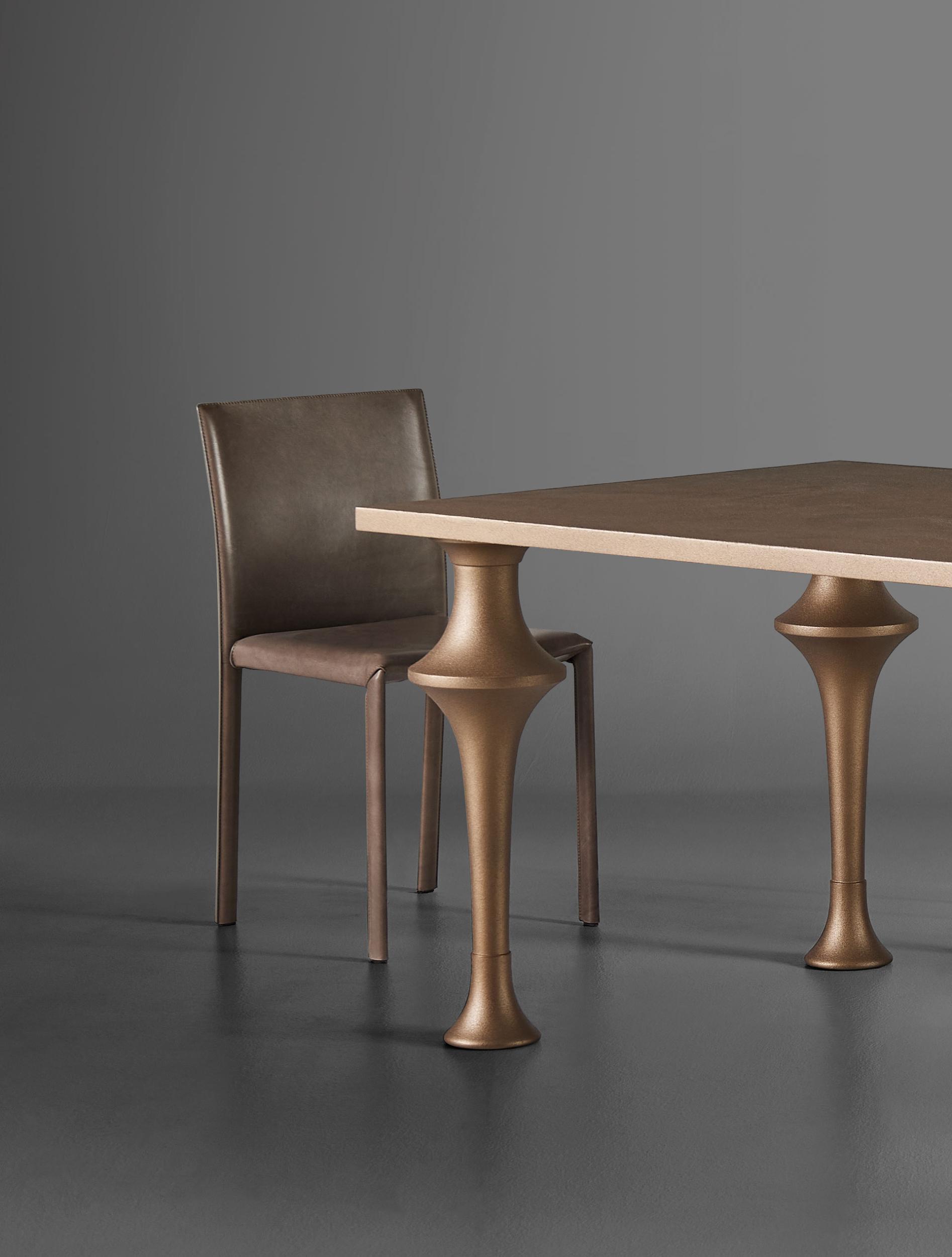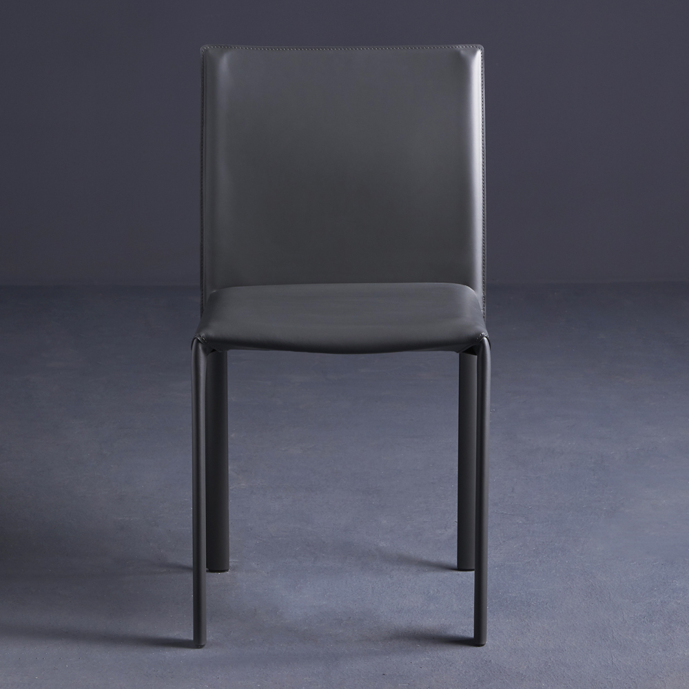 Chair entirely covered in leather.
