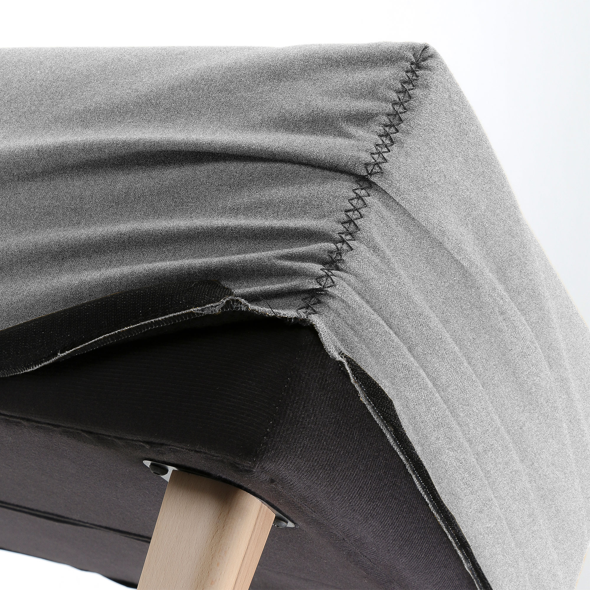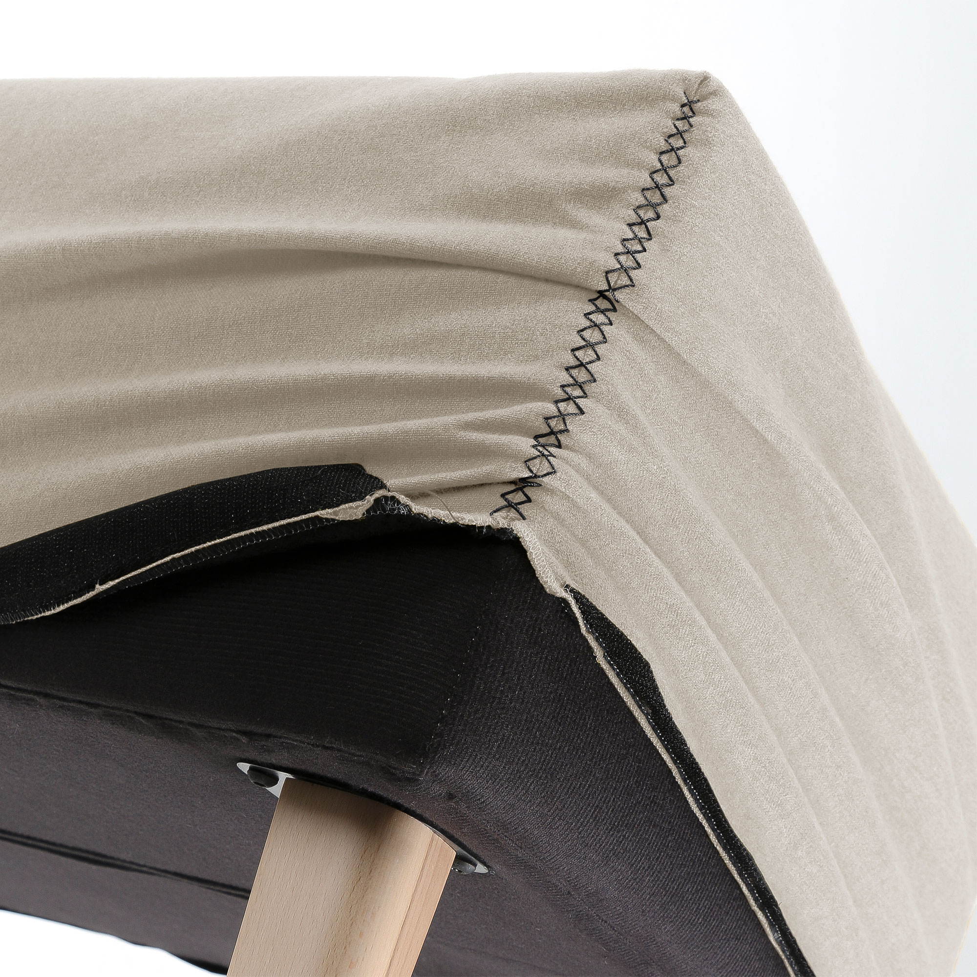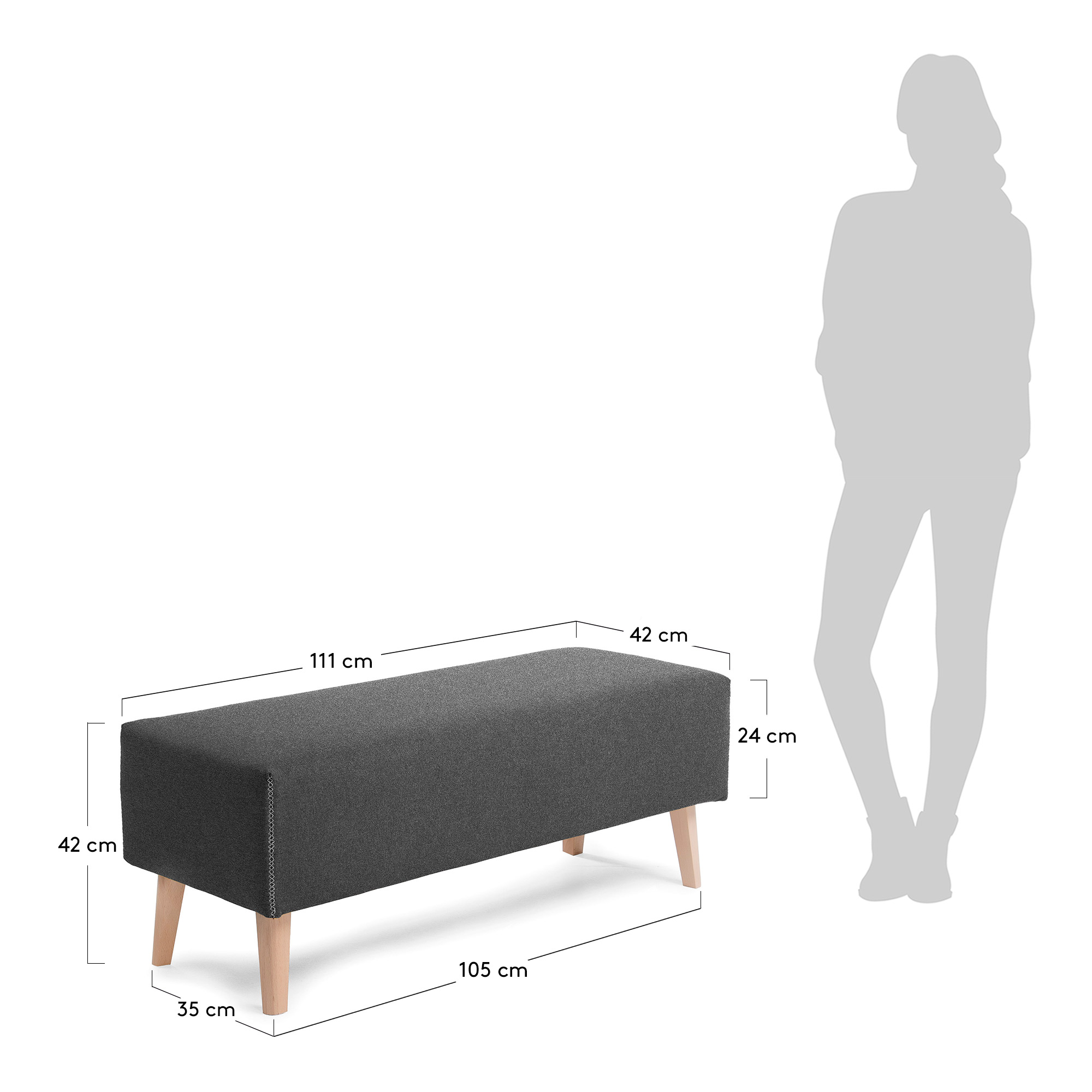 Upholstered bench in Varese fabric with stain-resistant Teflon treatment. Removable. Legs in natural beech wood.