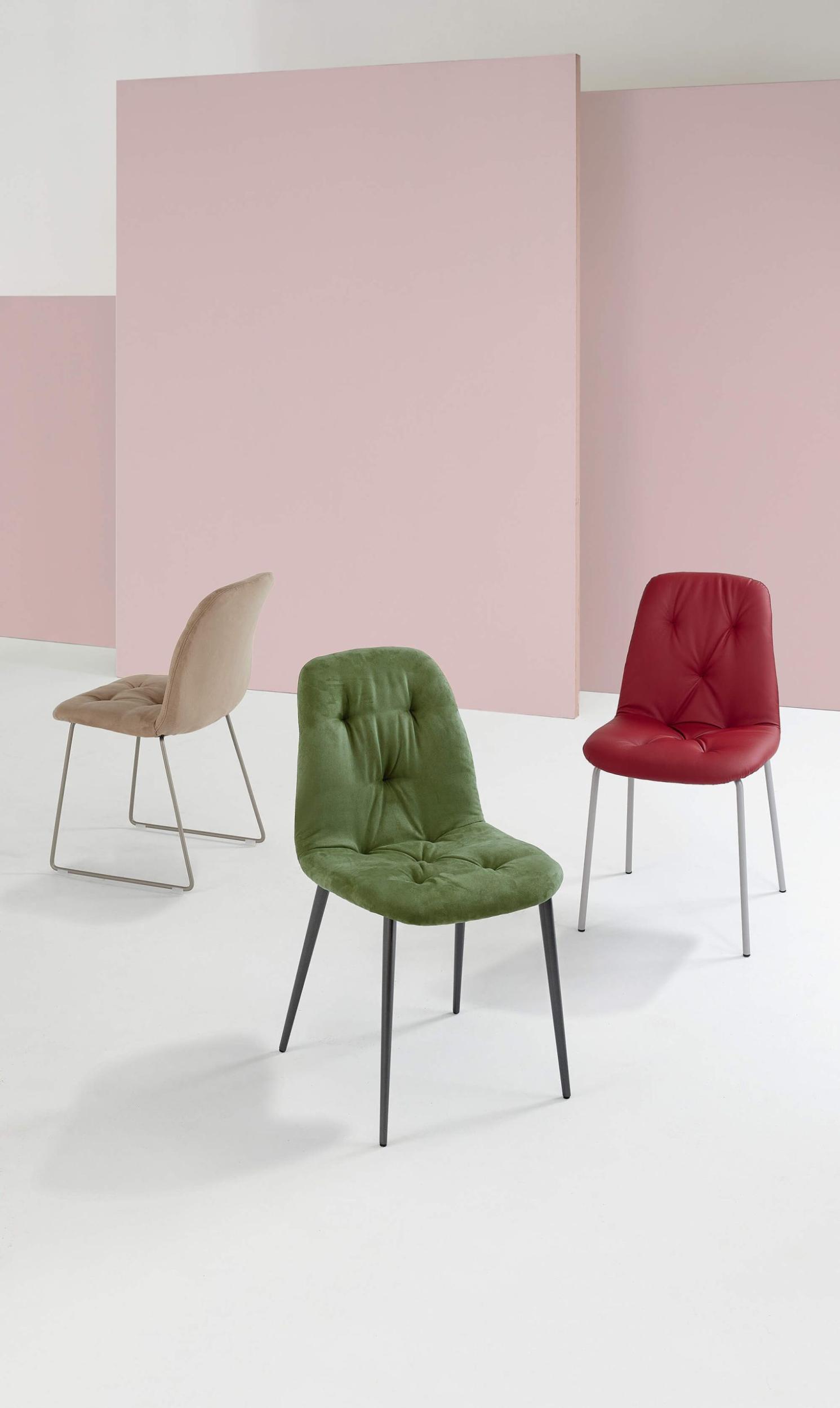 The Spring chair combines elegance and functionality in a contemporary design perfect for modern spaces. With its lacquered steel frame and padded shell upholstered in eco-leather, EcoNabuk, or Penny fabric, this chair offers exceptional comfort and a sophisticated look.