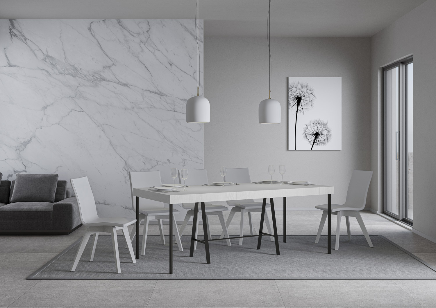 The Banco Premium Small extendable console table is versatile and sturdy, making it a perfect addition to any room in the home: entryway, kitchen, dining room, living room, or hallway. The Banco Premium Small extendable console table can easily be transformed into a large dining table up to 196 cm long, seating 10 people. Made from melamine-faced panels and iron legs. The extension system with telescopic aluminum runners and the included side supports make the console table stable and sturdy. Once the console table is closed, the extensions must be stored away. Itamoby product Made in Italy Dimensions: Closed console table: W 90 D 40 H 77 cm Length with 1 extension: 92 cm Length with 2 extensions: 144 cm Length with 3 extensions: 196 cm