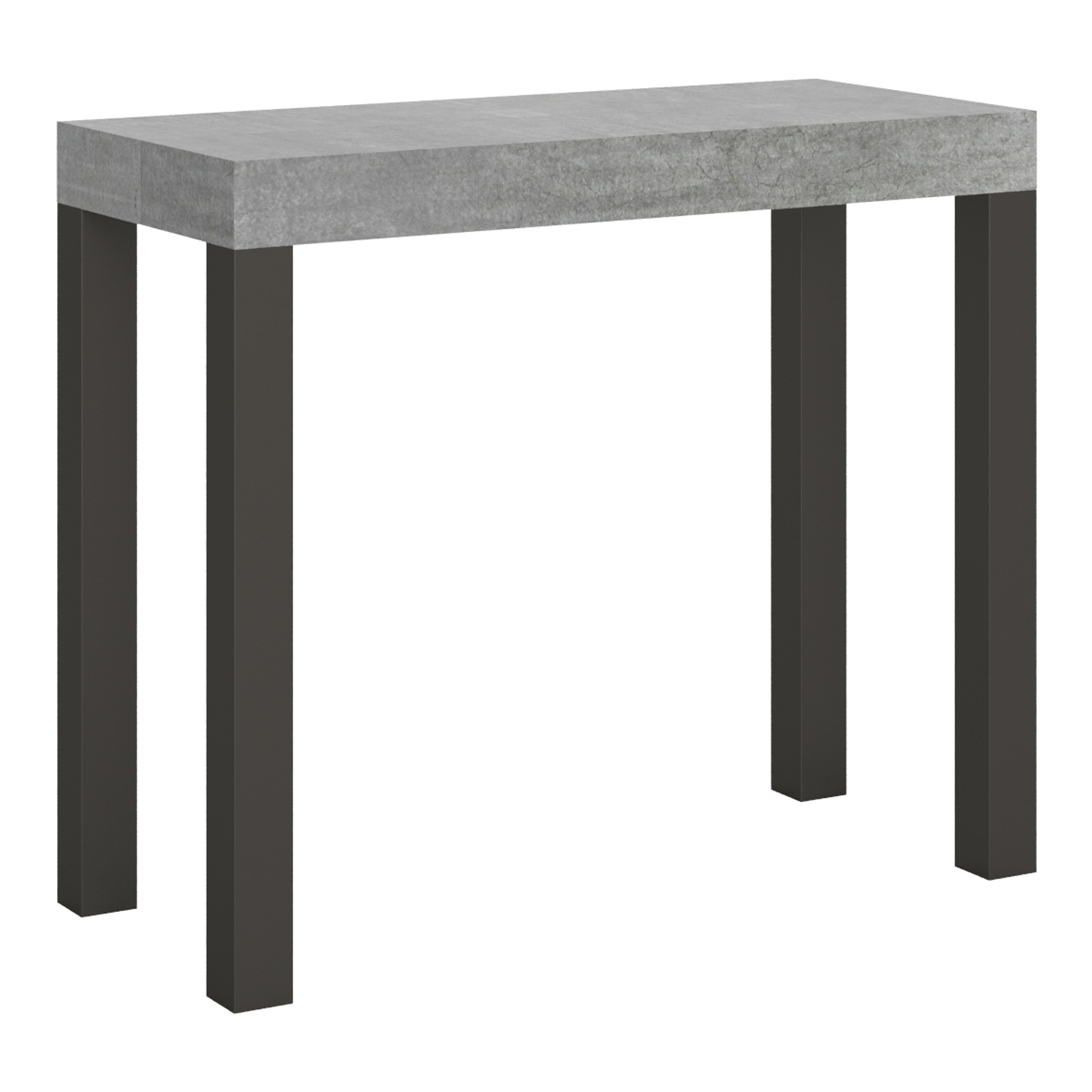 Extending console table Everyday Small, versatile and robust, a perfect furnishing solution ideal for any environment: entrance, kitchen, dining room, living room or hallway. The extending console table Everyday Small can be turned effortlessly into a large dining table that can be extended up to 196 cm that can accommodate up to 10 people. Made of melamine boards and iron legs. The extending mechanism with telescopic aluminium rails and the provided central support system make the console table steady and sturdy. When the console table is collapsed, the extension leaves have to be stored elsewhere. Itamoby product Made in Italy Sizes: Closed console table: L.90 D.40 H.77 cm Length with 1 leaf: 92 cm Length with 2 leaves: 144 cm Length with 3 leaves:: 196 cm