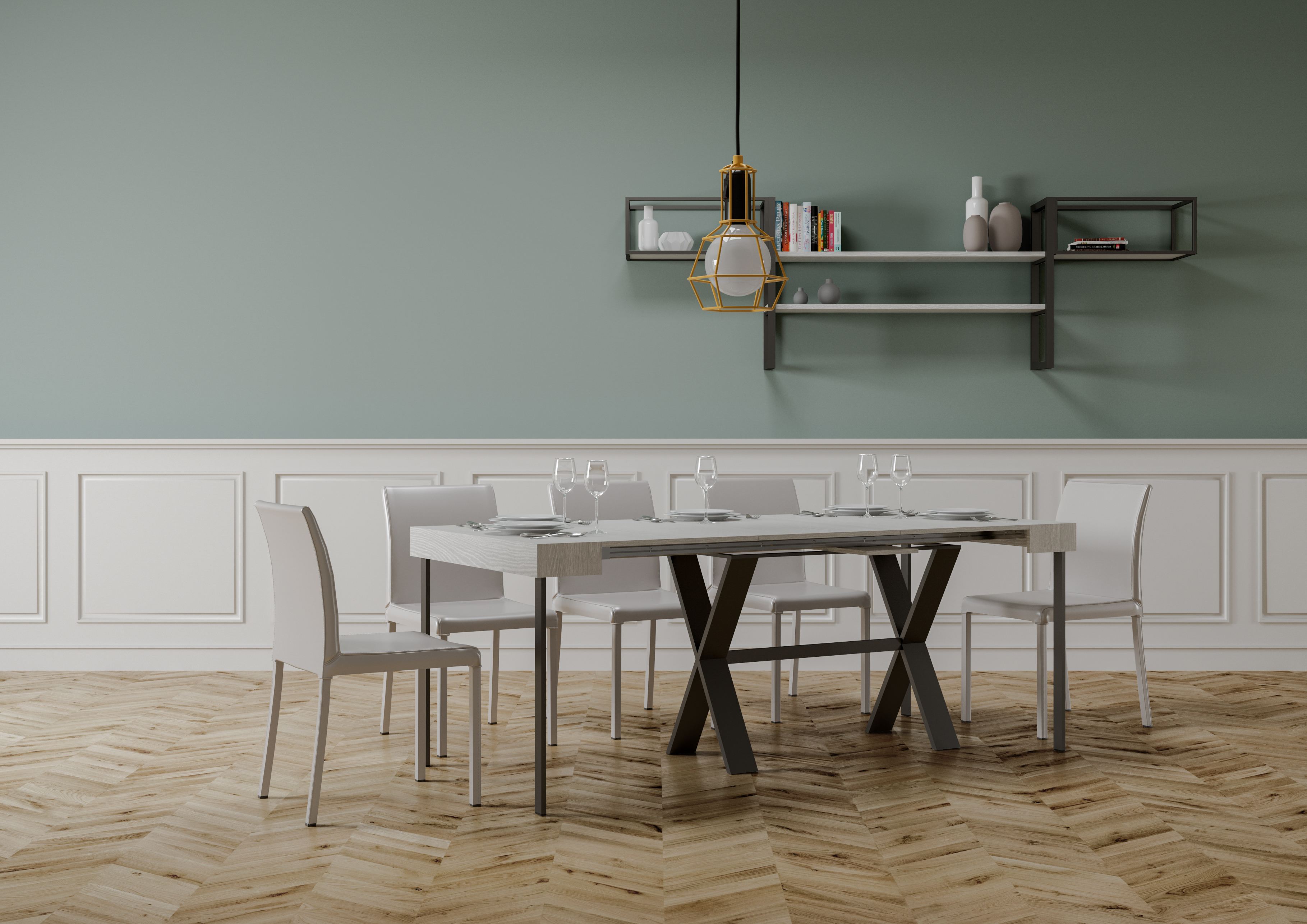 The Xenia Small extendable console table is versatile and sturdy, making it the perfect addition to any room in the home: entryway, kitchen, dining room, living room, or hallway. The Xenia Small extendable console table can easily be transformed into a large dining table up to 196 cm long, seating 10 people. Made from melamine-faced panels and iron legs. The extension system with telescopic aluminum runners and the included side supports make the console table stable and sturdy. Once the console table is closed, the extensions must be stored away. Itamoby product, Made in Italy. Dimensions: Closed console table: W 90 D 40 H 77 cm. Length with 1 extension: 92 cm. Length with 2 extensions: 144 cm. Length with 3 extensions: 196 cm.