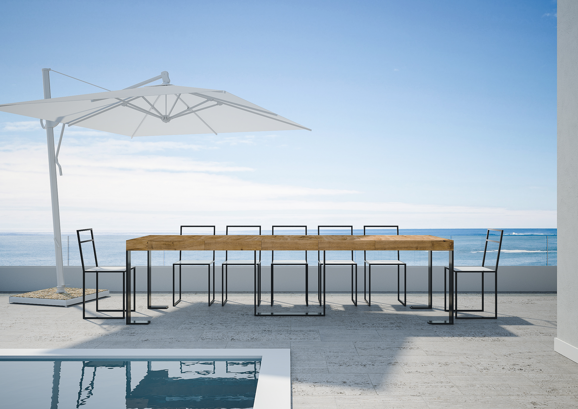 Dimensions L.90 D.40 H.77 cm (extendable up to 300 cm)