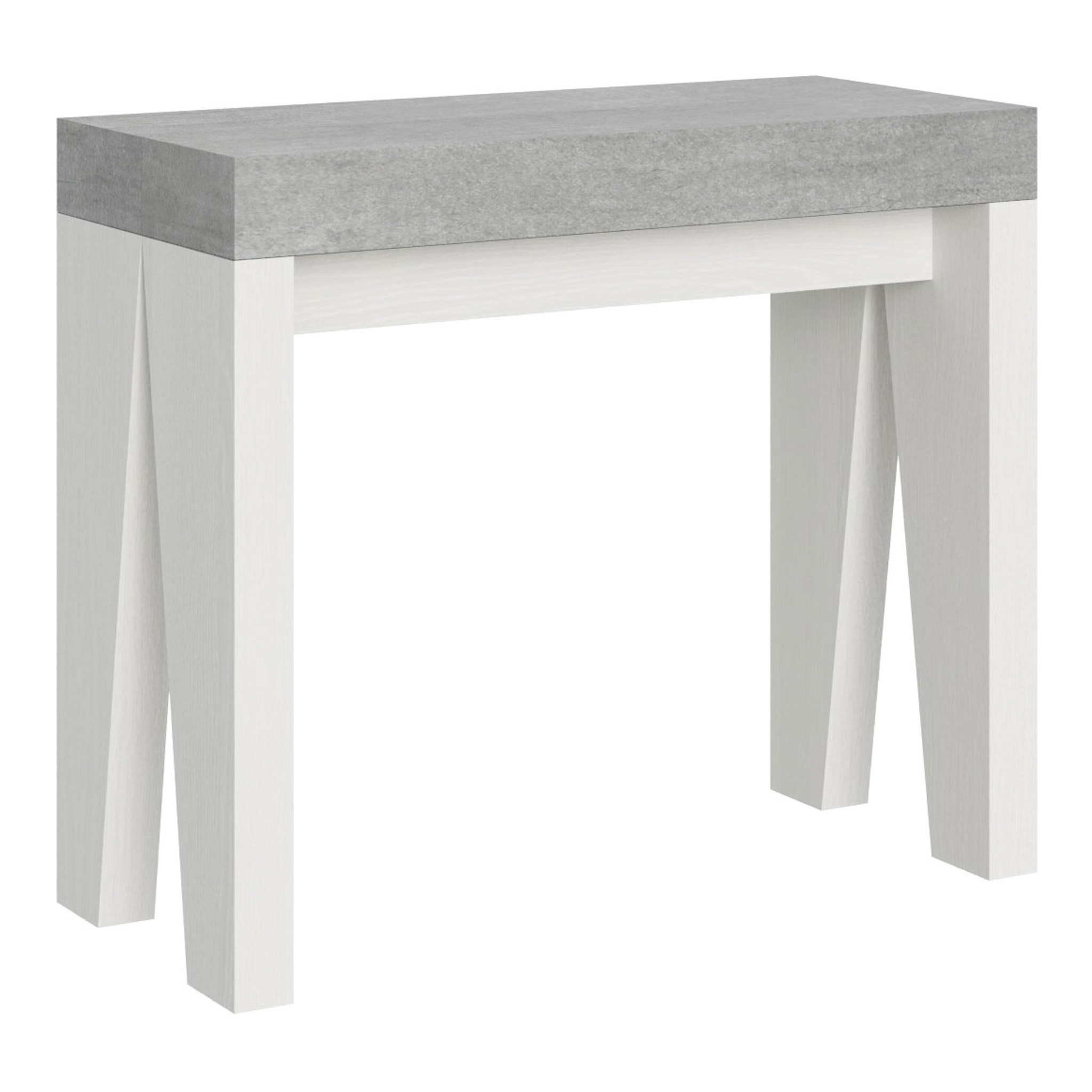 Extending console table Naxy, versatile and robust, a perfect furnishing solution ideal for any environment: entrance, kitchen, dining room, living room or hallway. The extending console table Naxy can be turned effortlessly into a large dining table that can be extended up to 300 cm that can accommodate up to 14 people. Made of melamine boards. The extending mechanism with telescopic aluminium rails and the provided central support system make the console table steady and sturdy. When the console table is collapsed, the extension leaves have to be stored elsewhere. Itamoby product Made in Italy Sizes: Closed console table: L.90 D.40 H.77 cm Length with 1 leaf: 92 cm Length with 2 leaves: 144 cm Length with 3 leaves:: 196 cm Length with 4 leaves: 248 cm Length with 5 leaves: 300 cm