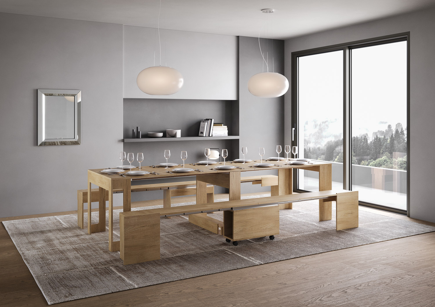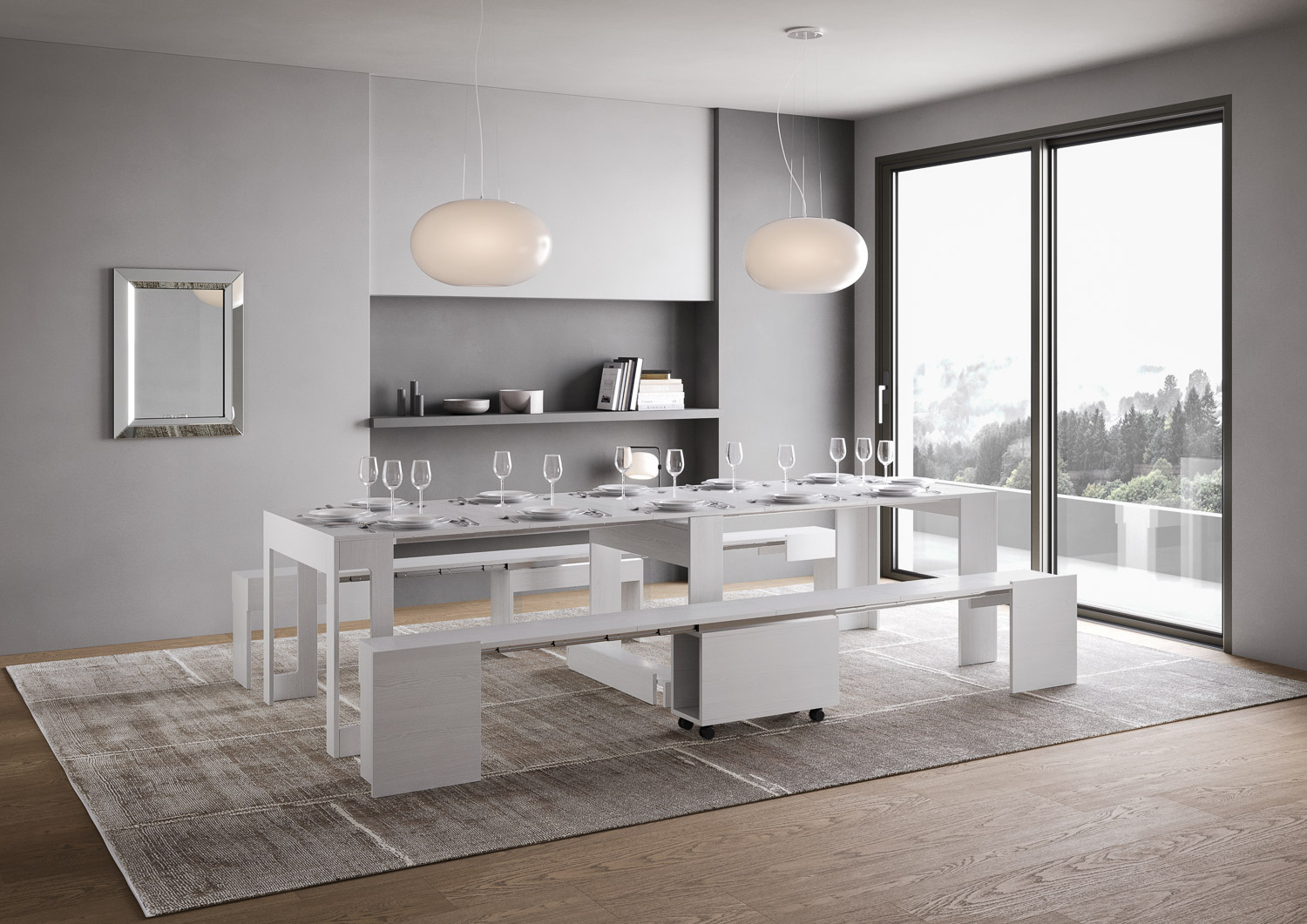 When closed, console and benches take very small space and so they can be placed in an entrance, kitchen, dining room, living room or hallway.